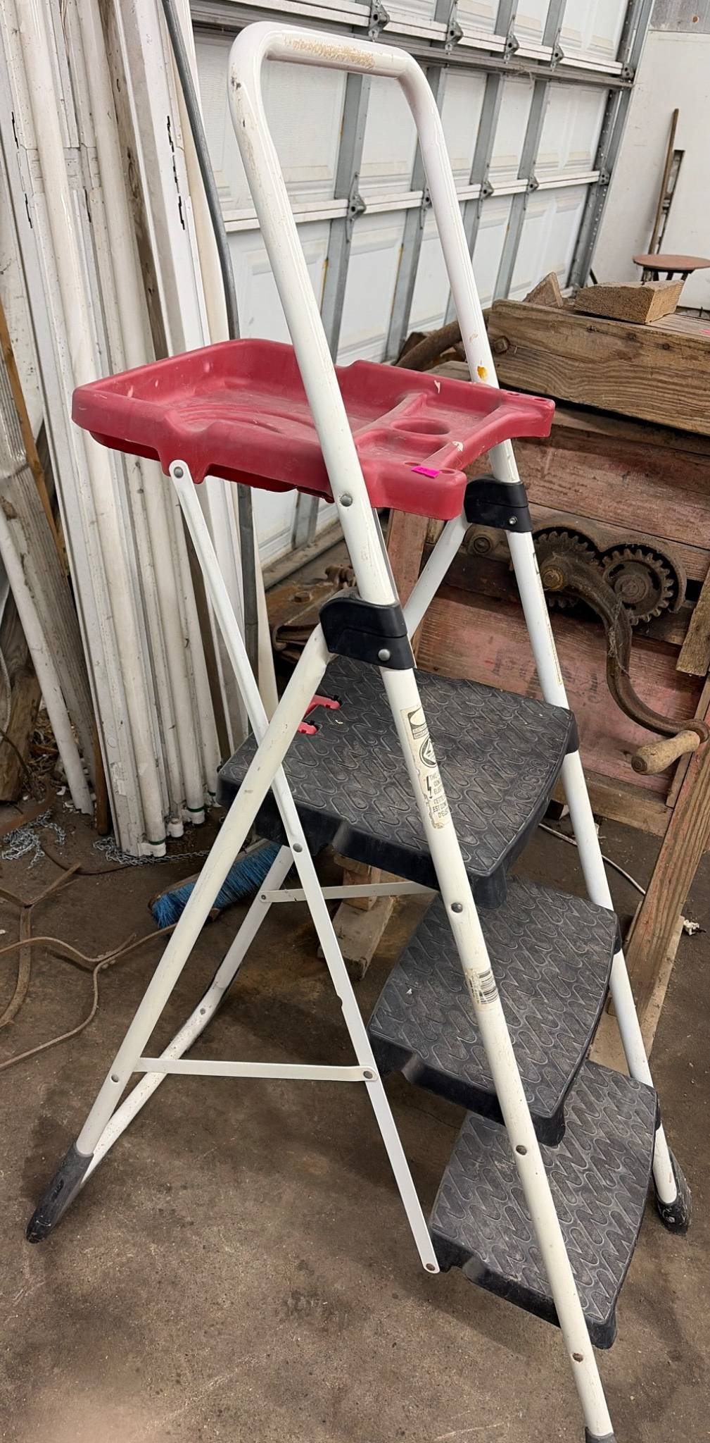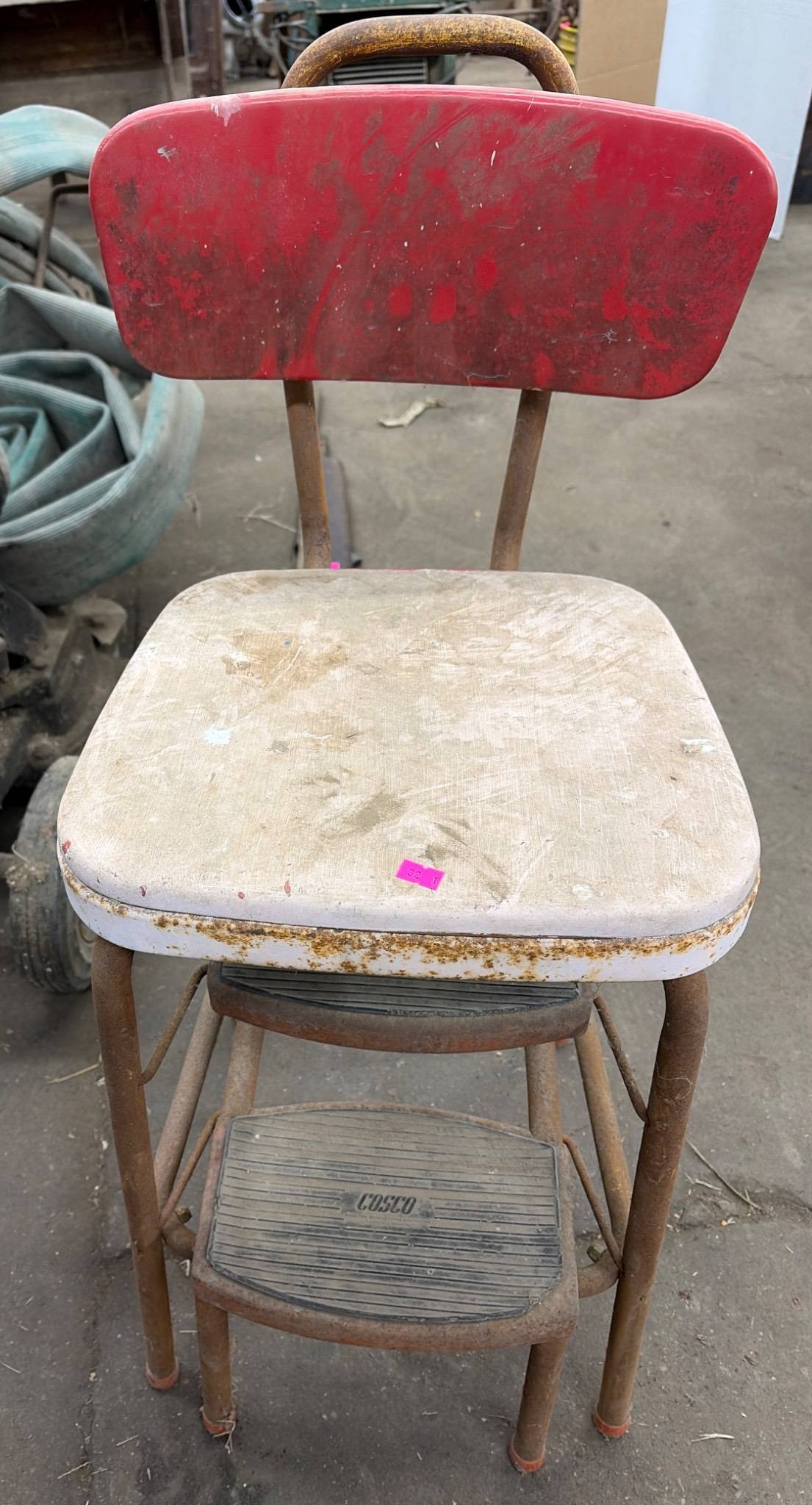 32 Cosco Metal Step Stool Chair with Red Backrest and 24” Height