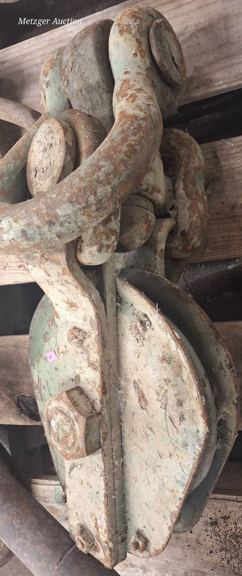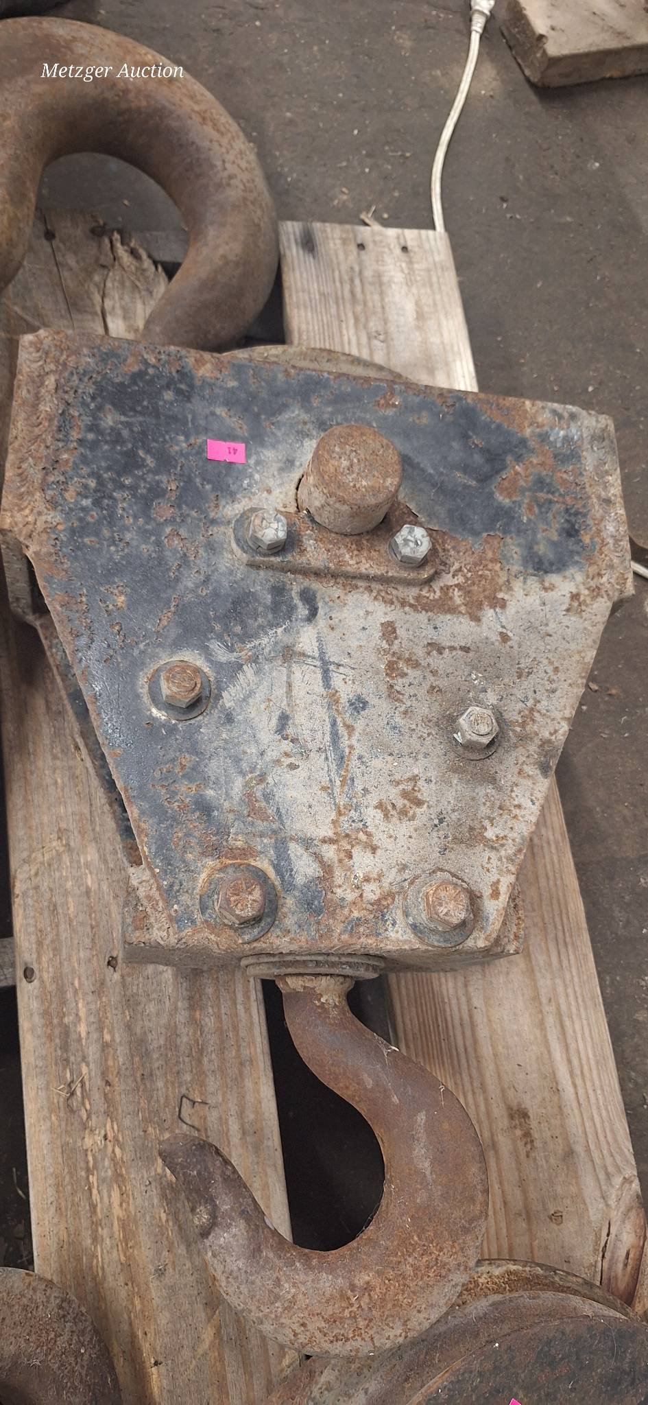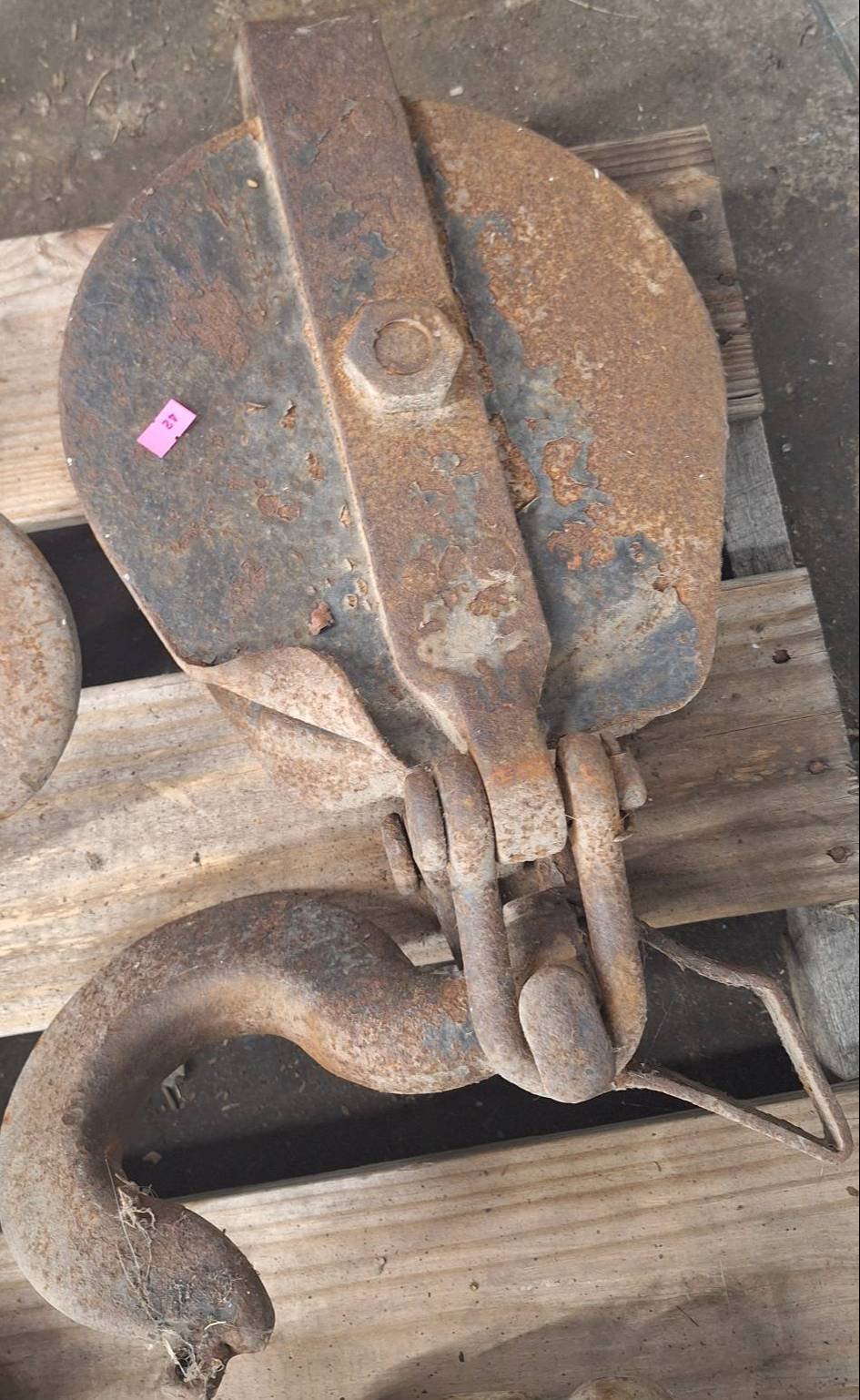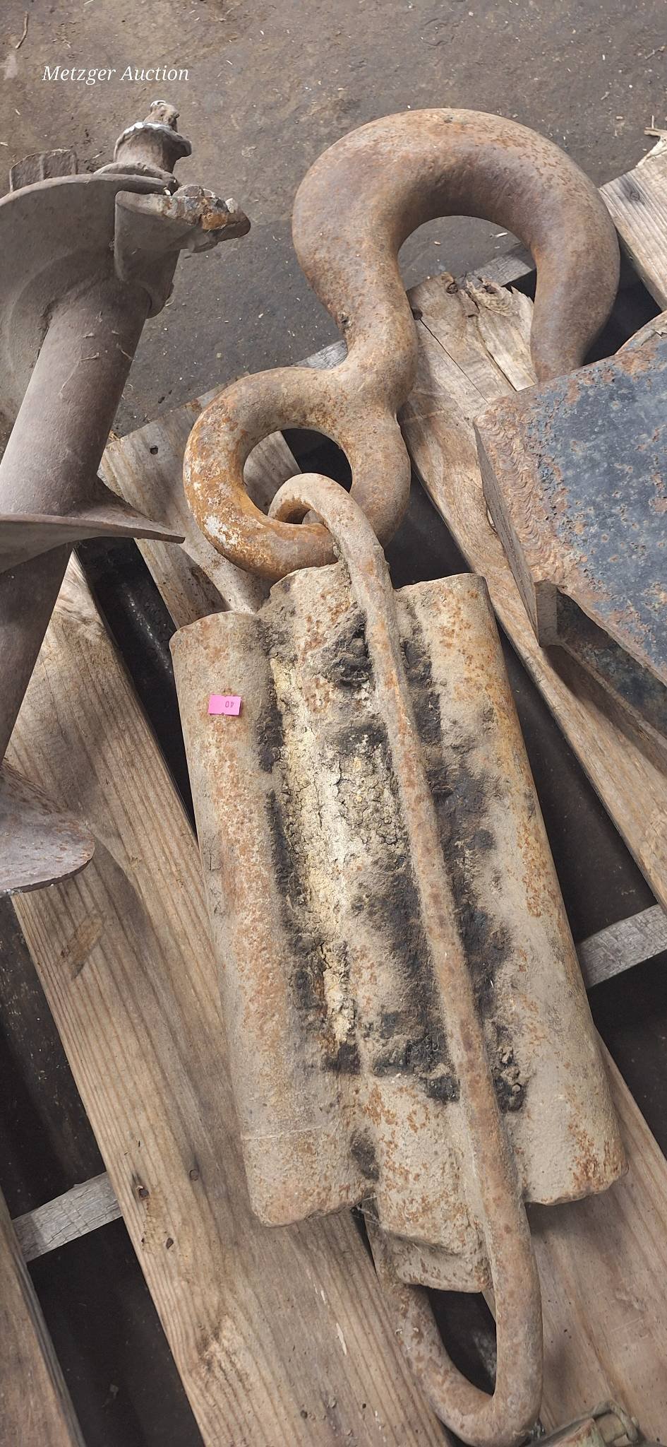 43 Steel Snatch Block with Pulley and Rusted Finish, 10?