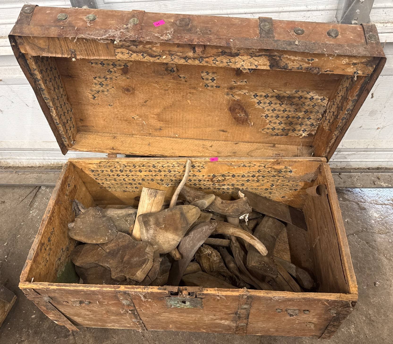 44 Wood Storage Trunk with Driftwood Pieces, 28”x15”x12”