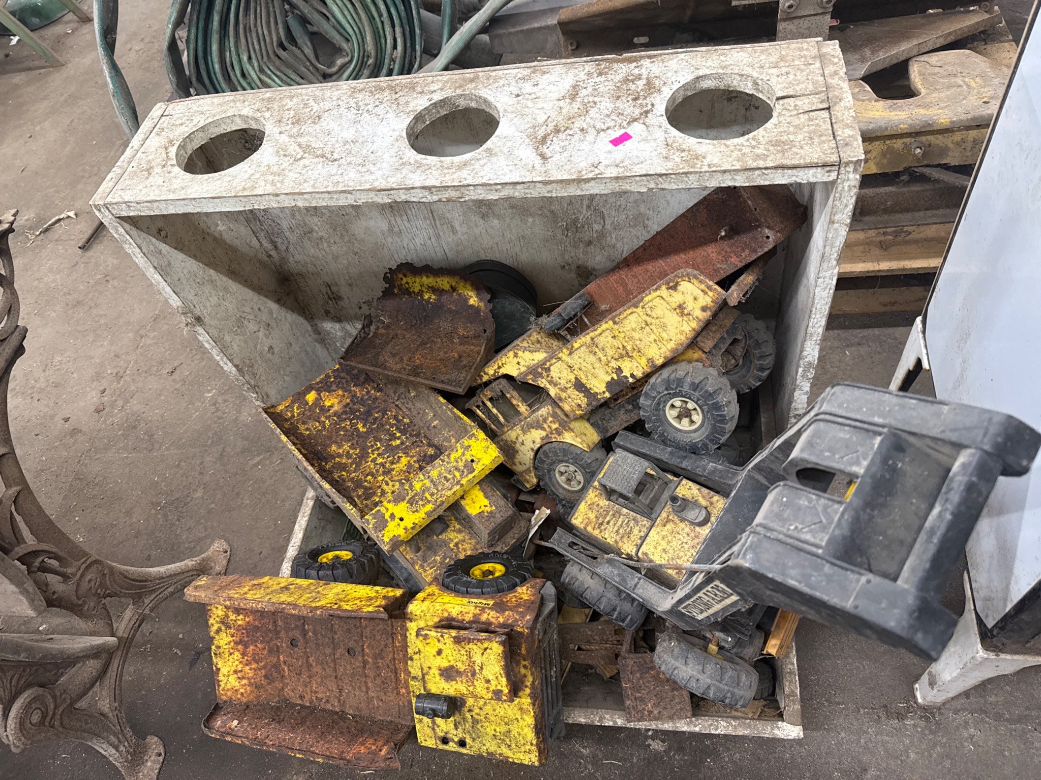 48 Yellow Rusted Metal Toy Trucks Inc. Tonka