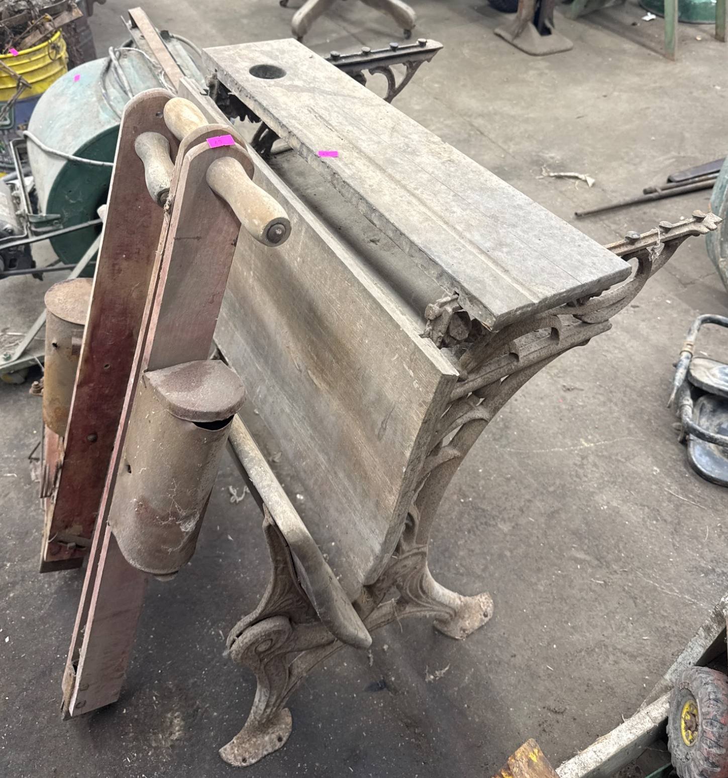 49 Cast Iron and Wood Treadle Machine Base with Removable Components, 29×35?