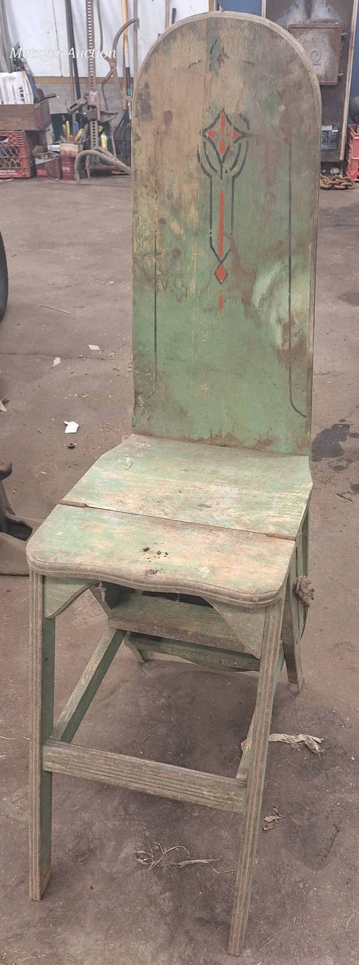 5 Primitive Green Chair with Painted Backrest and Folding Seat, 14x16x44