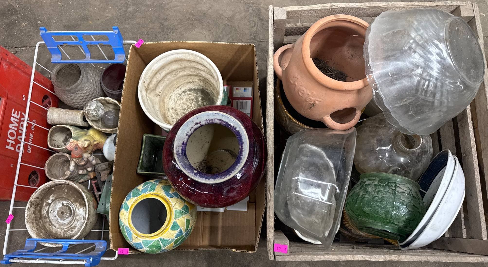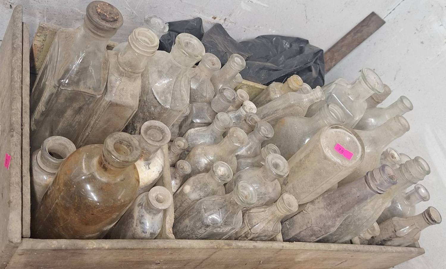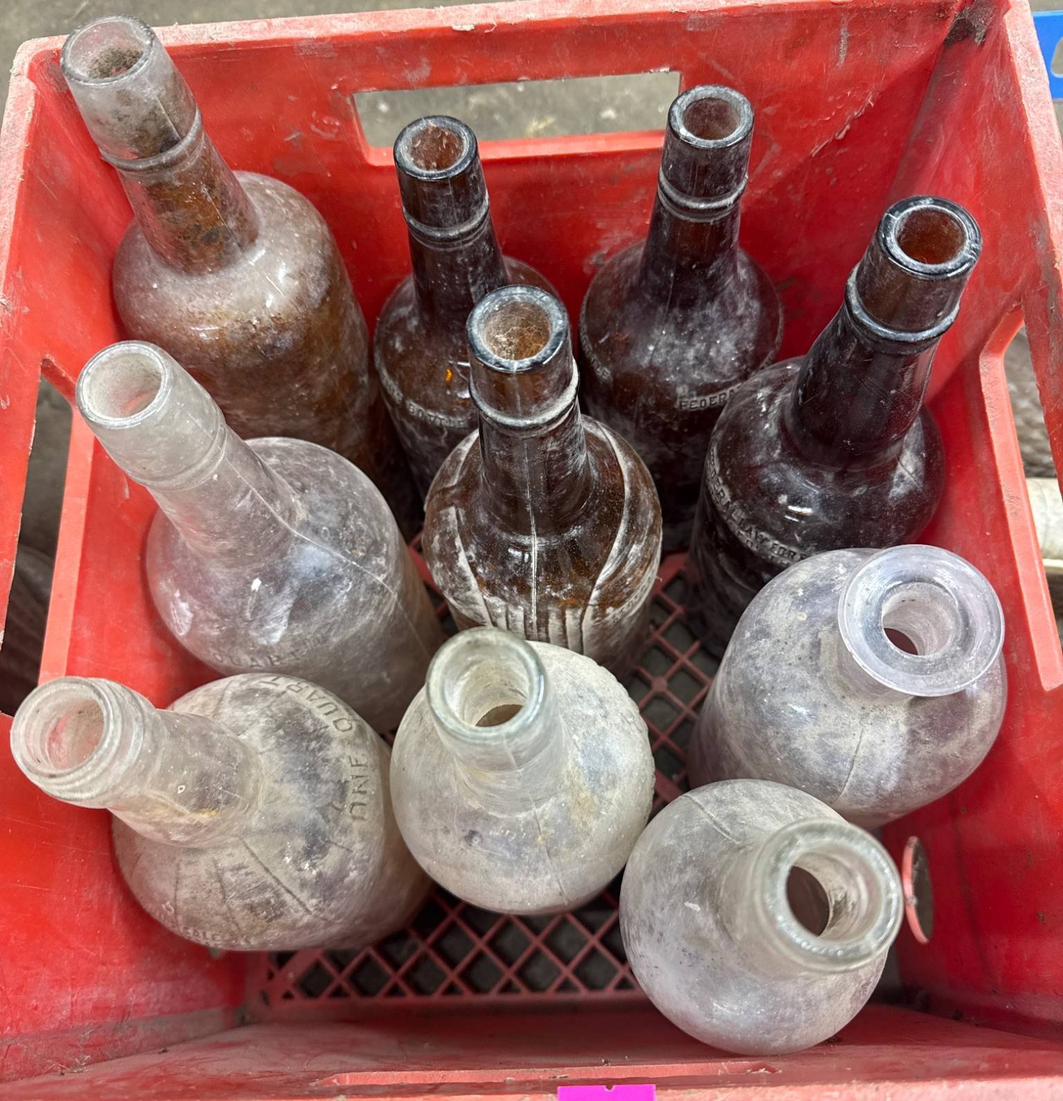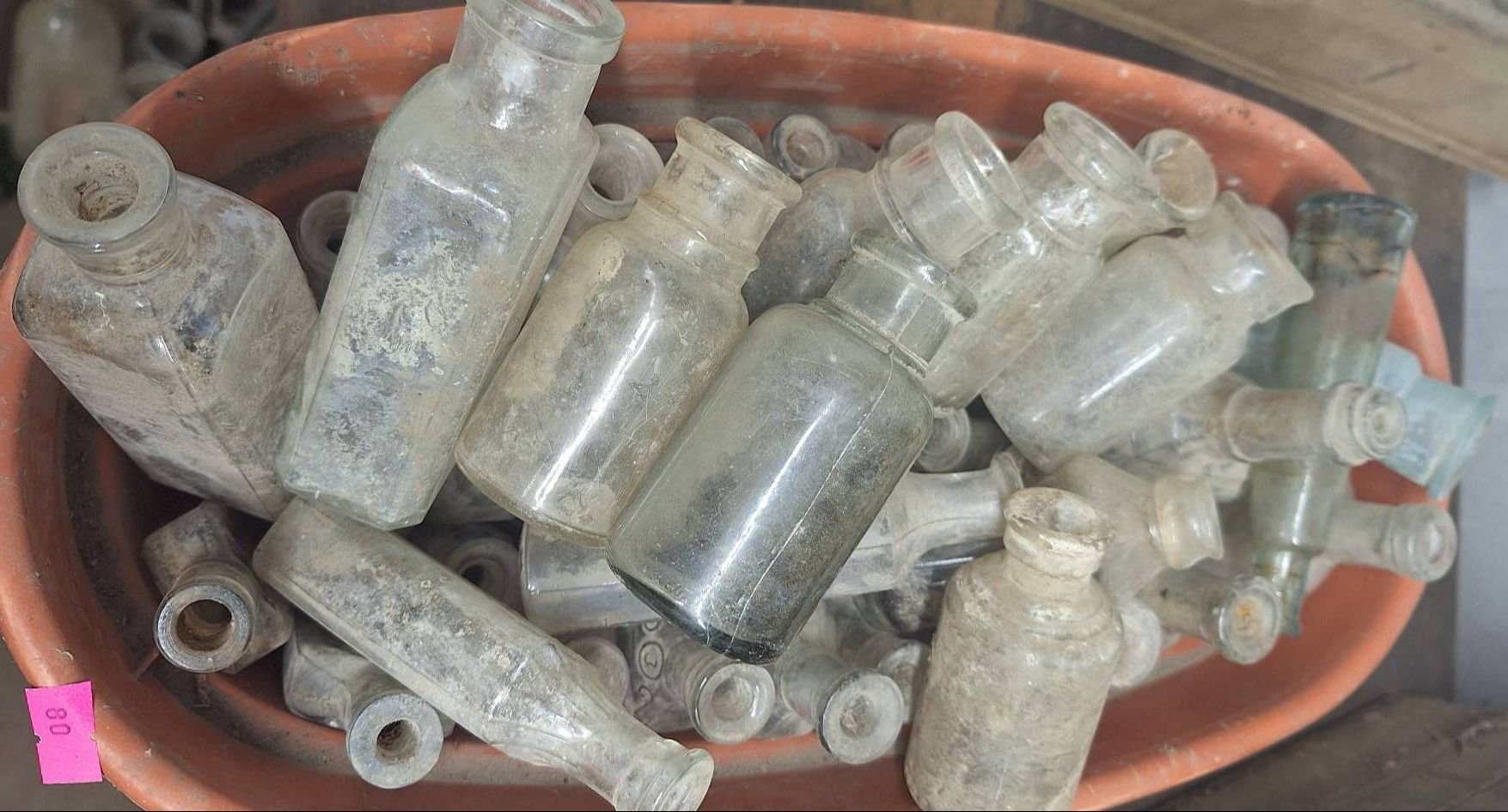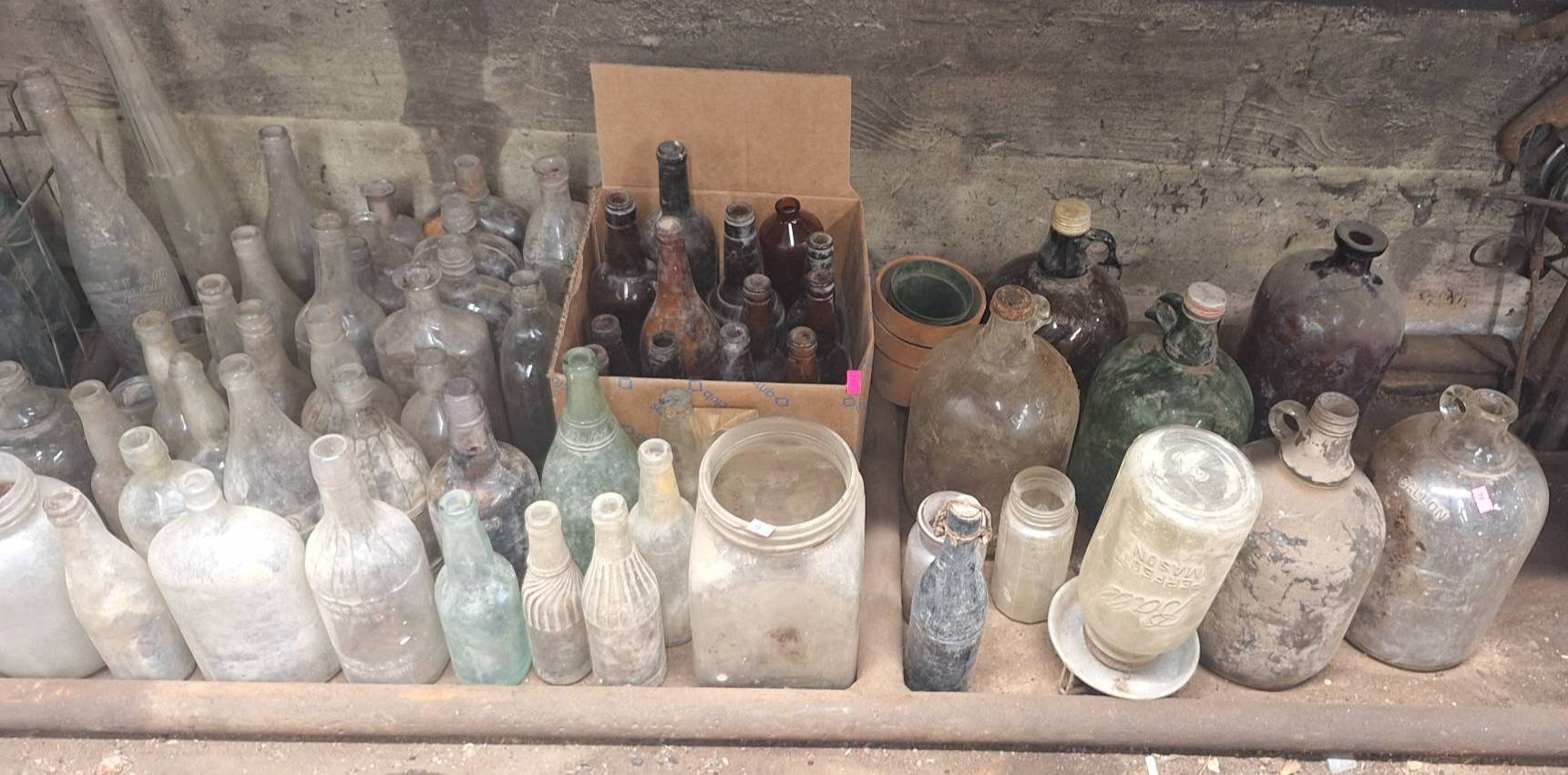 78 Glass Bottles and Jugs, Chicken Waterer, Various Colors and Sizes
