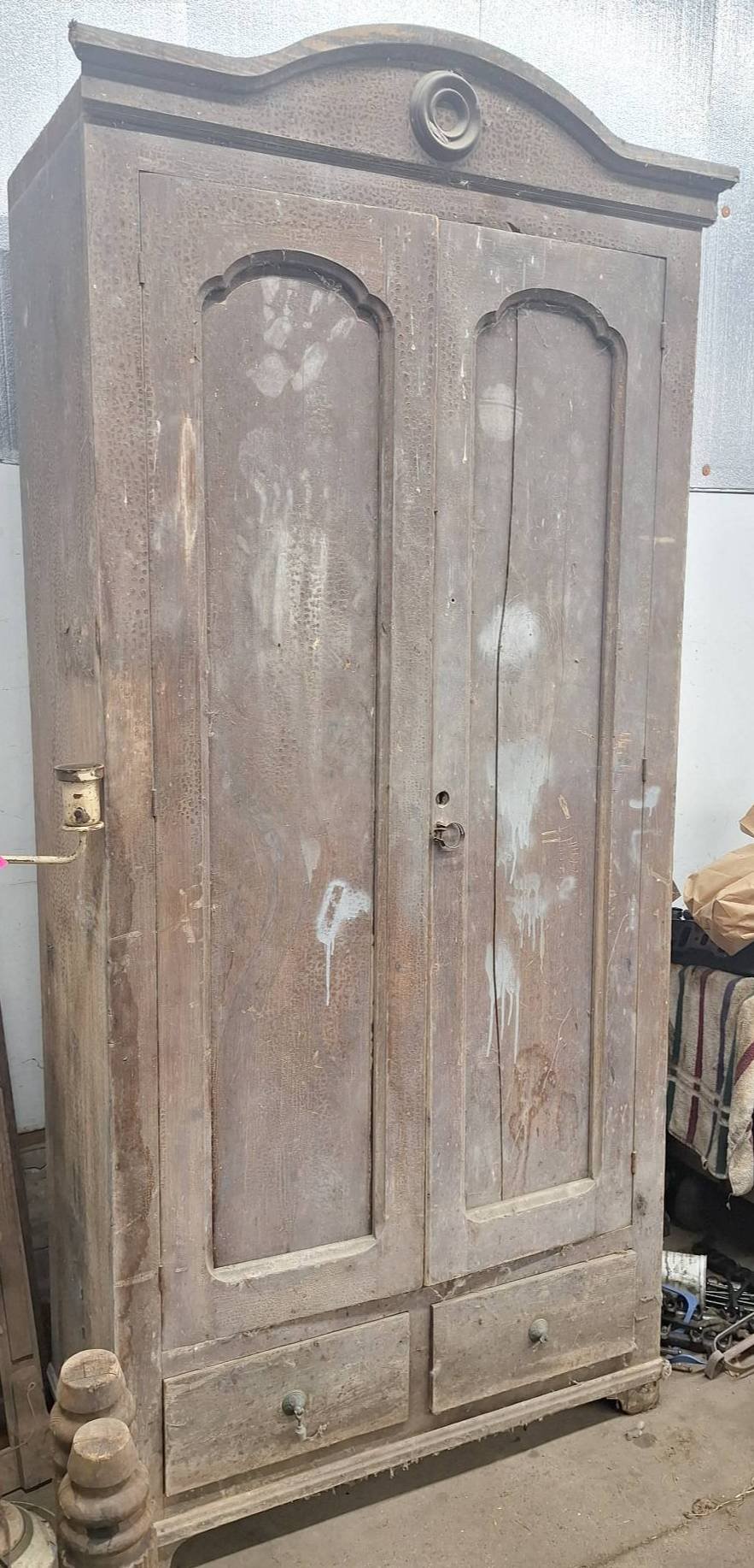 69 Primitive Armoire Wardrobe with Double Doors and Decorative Arch, 41x90x19?