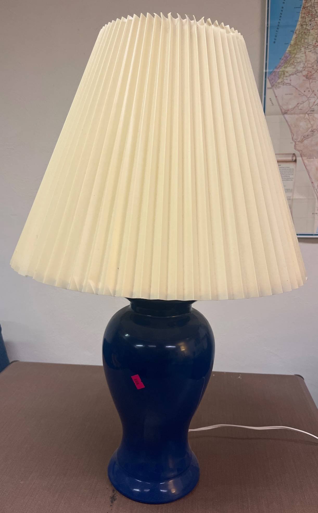 106 Blue Table Lamp with Pleated Shade, 26 1/2 Inches Tall