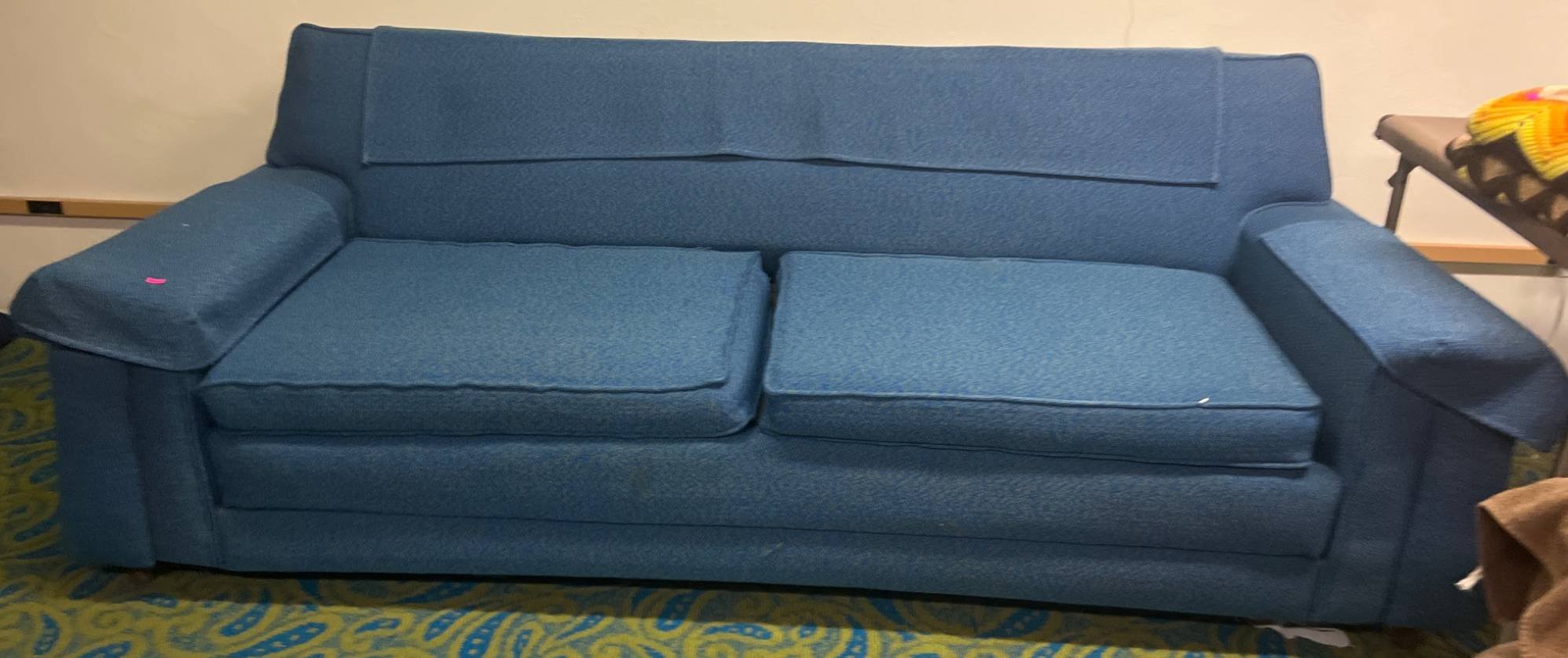 109 Blue Upholstered Hide-A-Bed Sofa with New Mattress, 83 Inches
