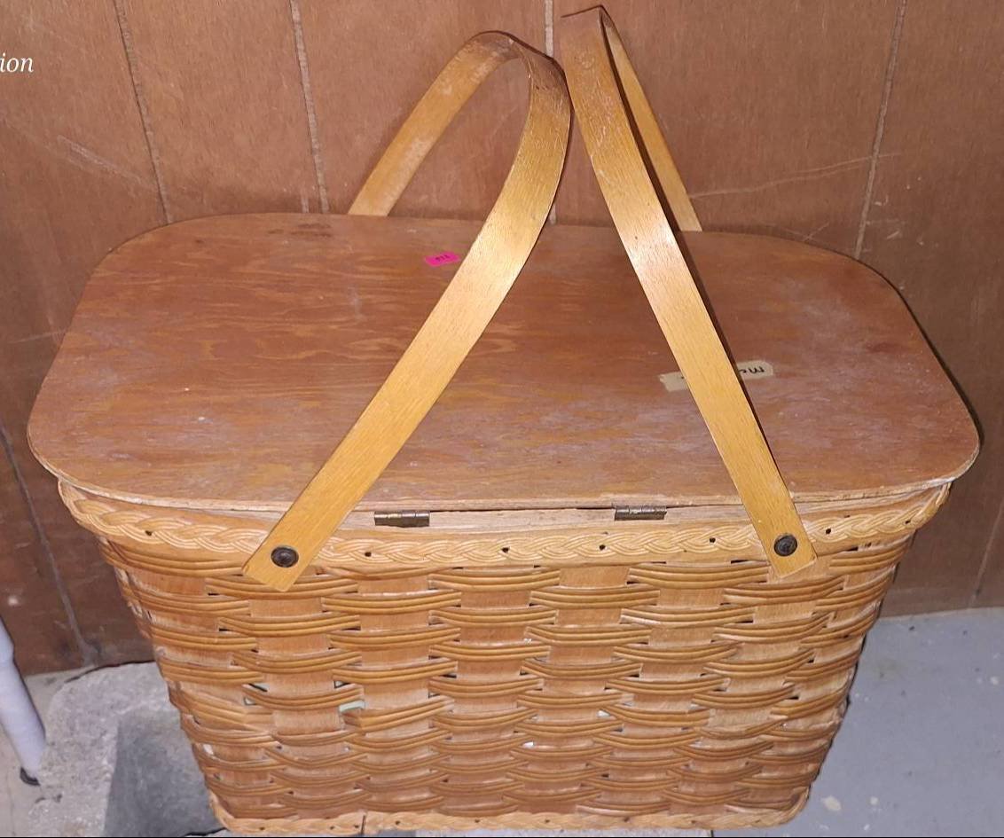 118 Wicker Picnic Basket with Hinged Wood Lid and Handles