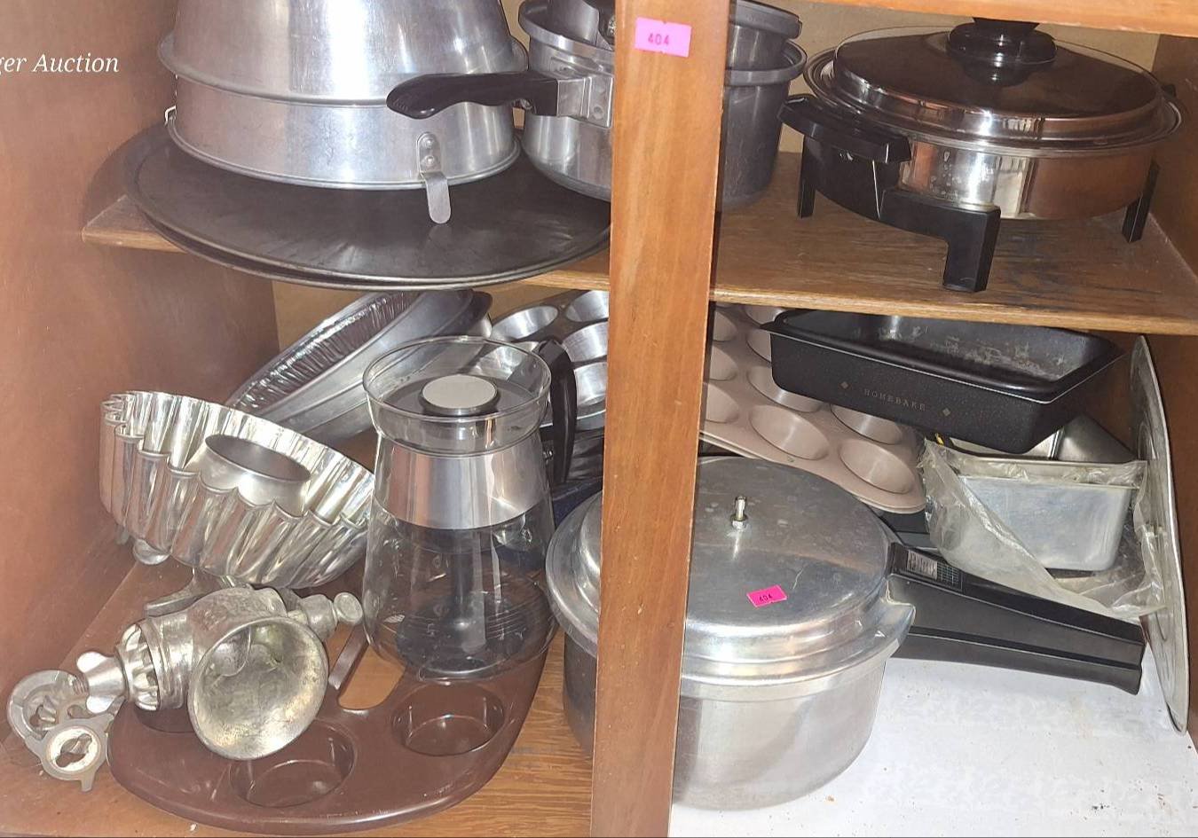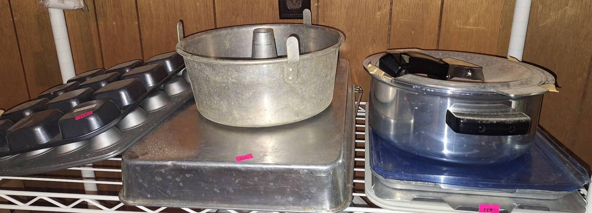 404 Kitchen Cookware and Baking Items inc. Aluminum Pans, Electric Skillet, Molds, Grinder