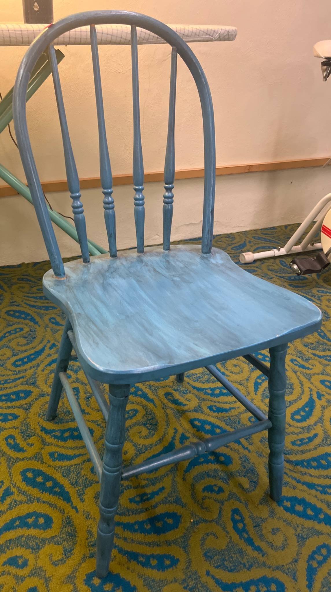 125 Blue Painted Plank Bottom Chair with Spindle Backrest, 16.5×16?