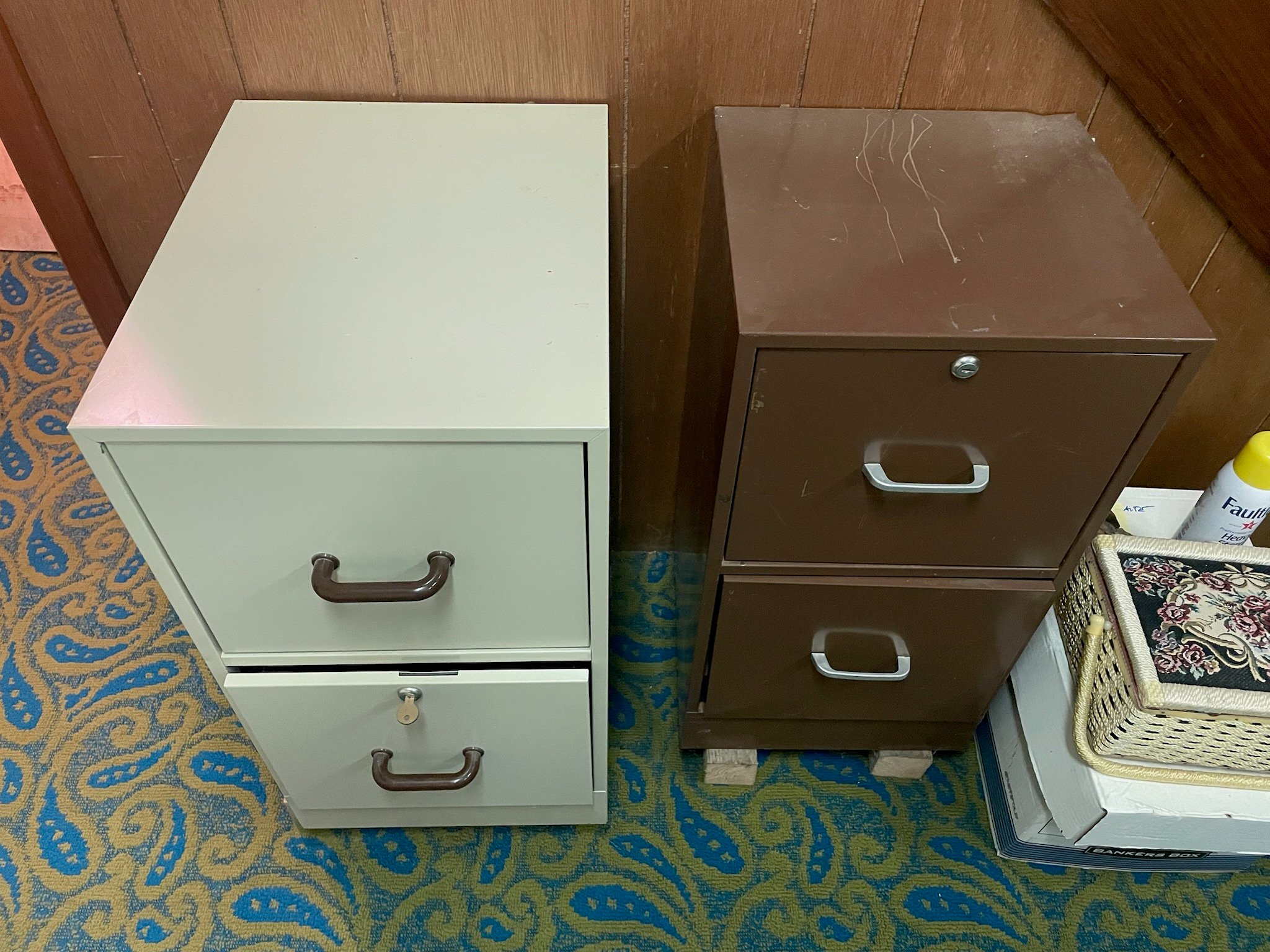 150 2 Filing Cabinets - Gray 18x15x28, Brown 14x15x28"