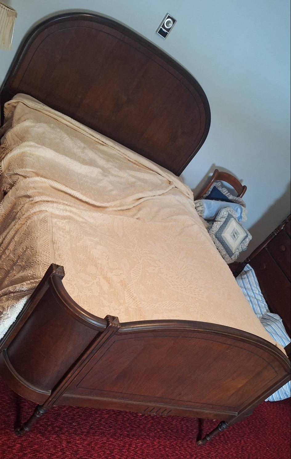 201 Antique Bed with Curved Footboard - inc. Headboard Bedframe with Mattress and Boxsprings and Bedding as Shown, 56×50?