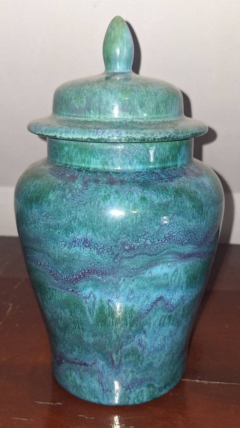 202 Lidded Ginger Jar with Blue and Green Glaze, 11in