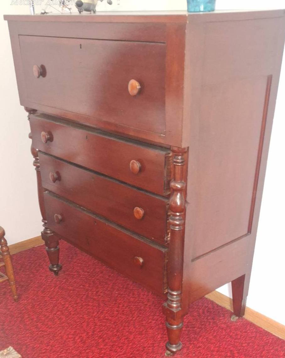 203 Primitive Wood Chest of Drawers with Turned Accents, 43.5x53x20?