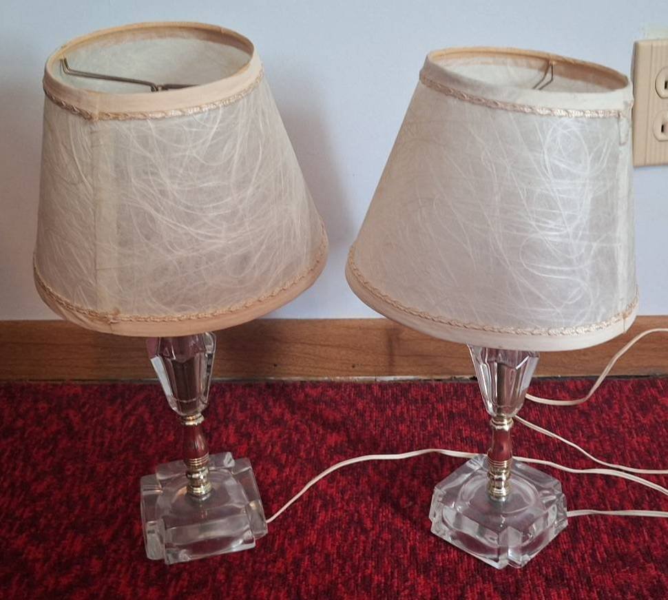 204 2 Glass-Based Dresser Lamps with Fabric Shades, 14in