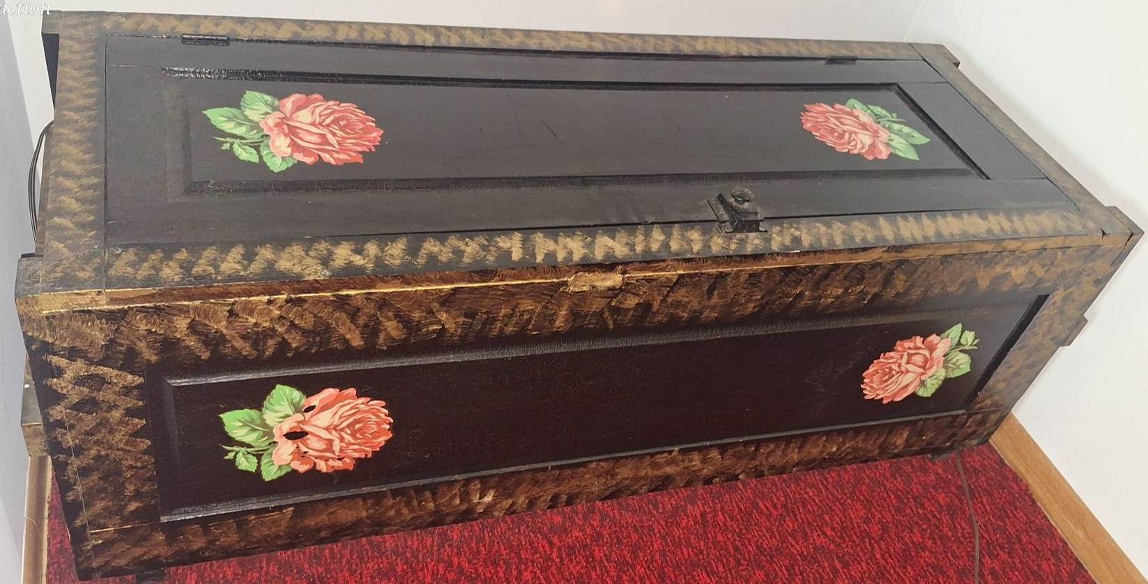 211 Painted Storage Chest with Floral Motif and Hinged Lid, 51x19x19