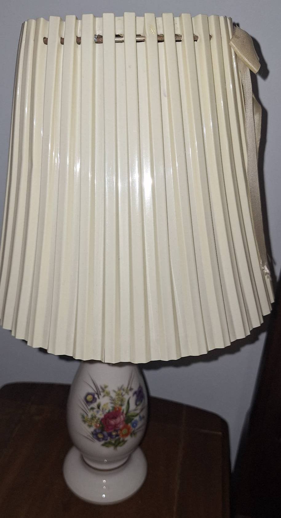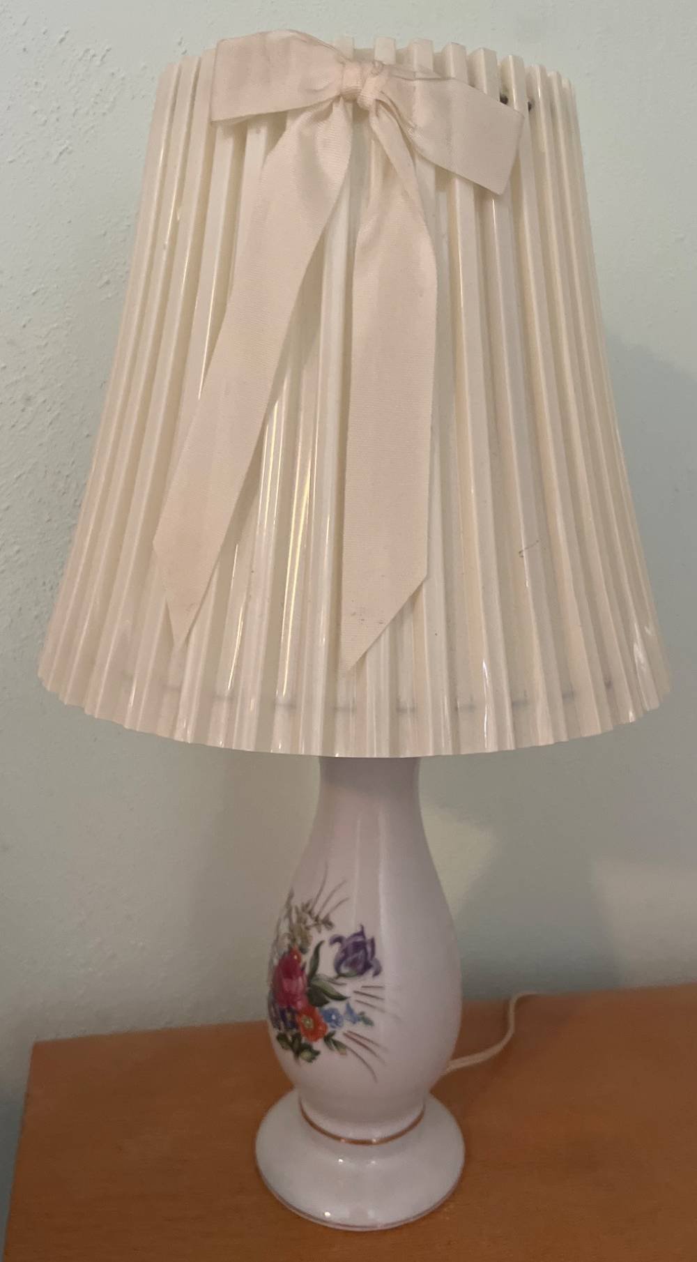 214 Porcelain Table Lamp with Pleated Shade and Floral Design, 16in