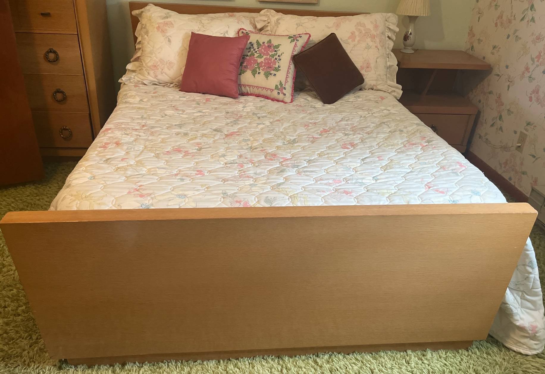 250 Blonde Retro Bed Frame, Full-Size, with Mattress and Headboard, 55?