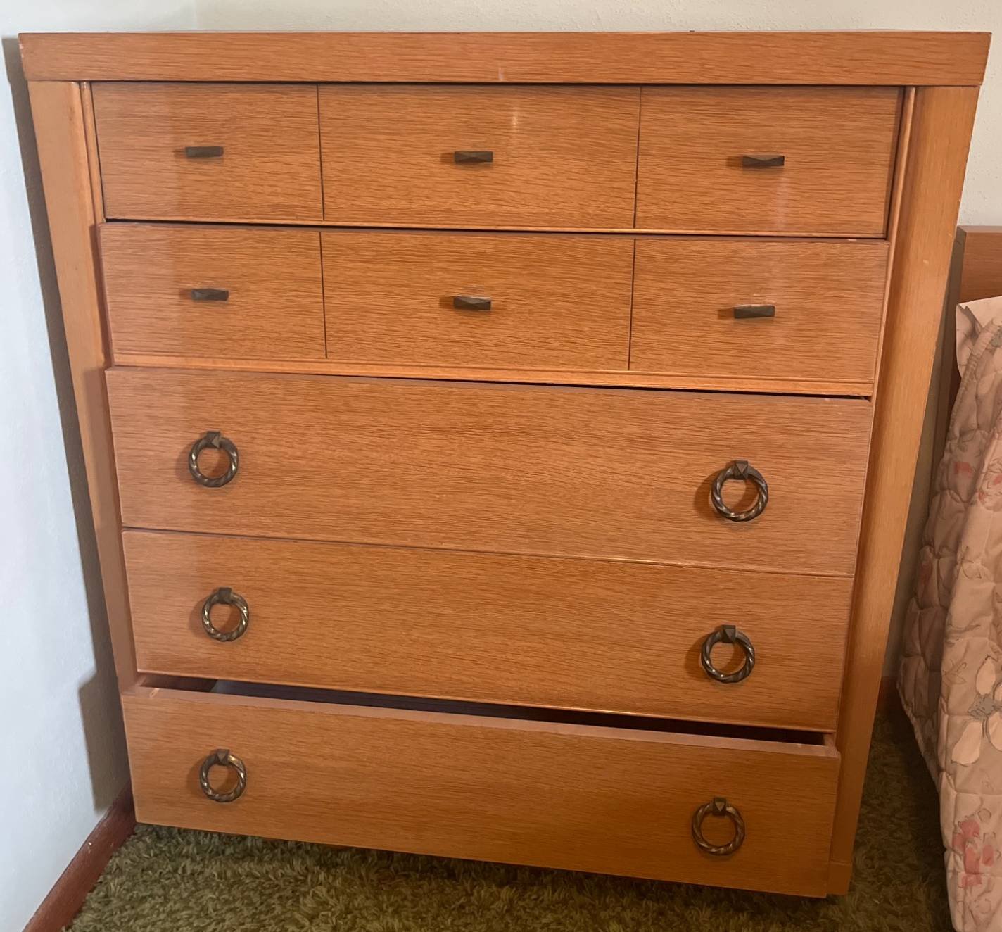 251 Blonde Retro 5-Drawer Chest with Dovetail Joinery and Brass Pulls, 41×19.5×45?