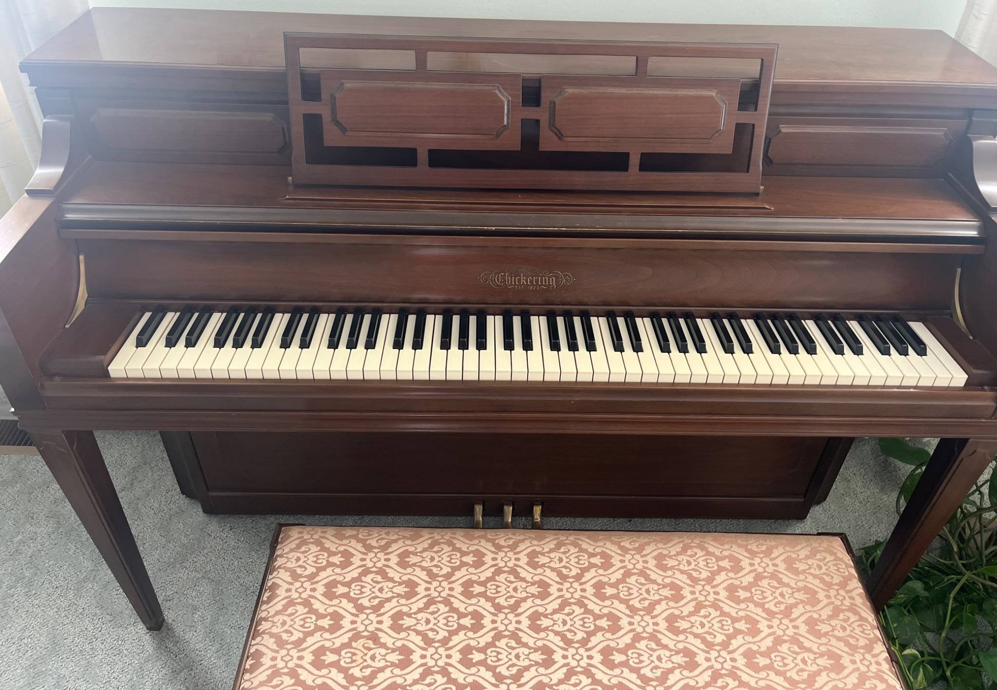 300 Chickering & Sons Spinet Piano with Bench & Music, Est. 1823, 59×2339.5?, 34x15x18?