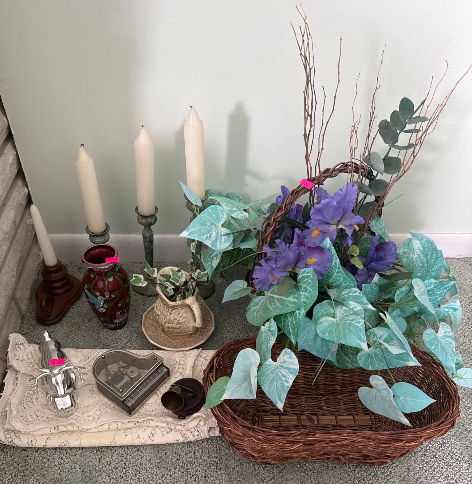 305 Basket, Faux Floral Arrangement, Candlesticks & Figurines