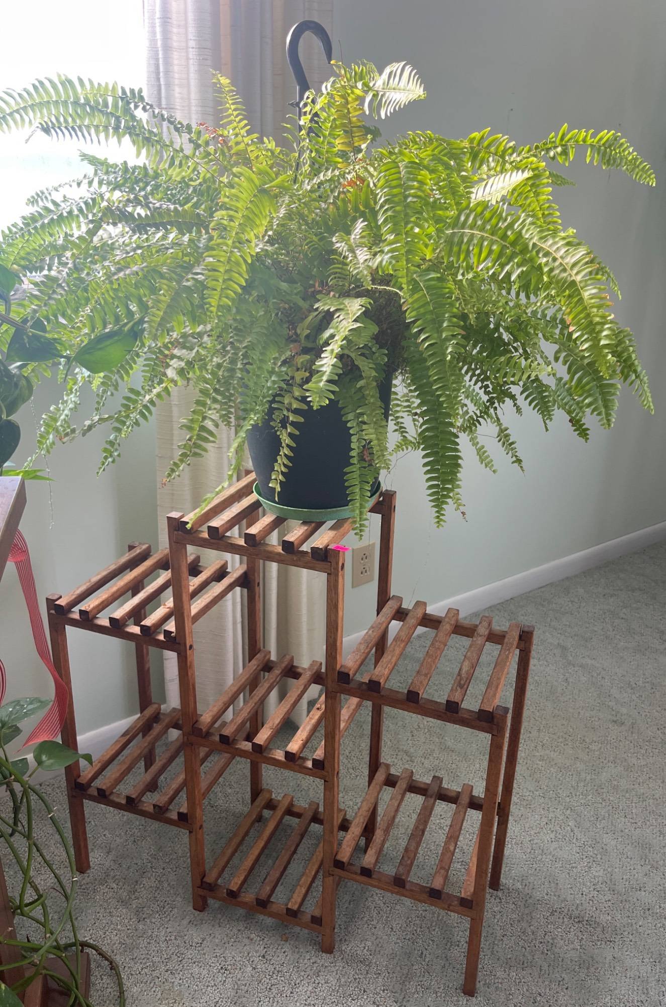 306 Multi-Tier Slatted Plant Stand with Plant, 27x9x28