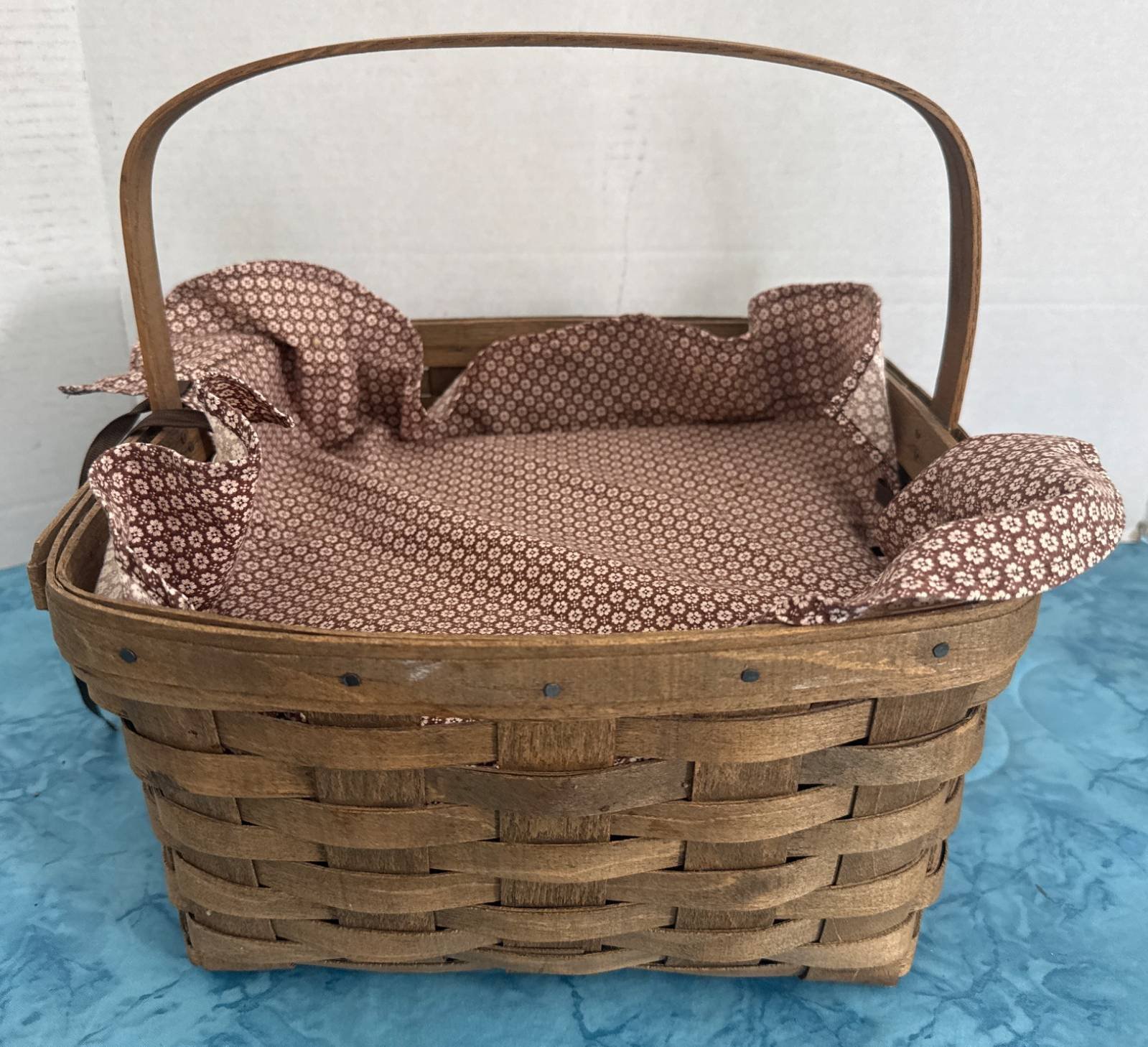 311 Woven Basket with Handle and Printed Fabric Liner, 12”x6.5”