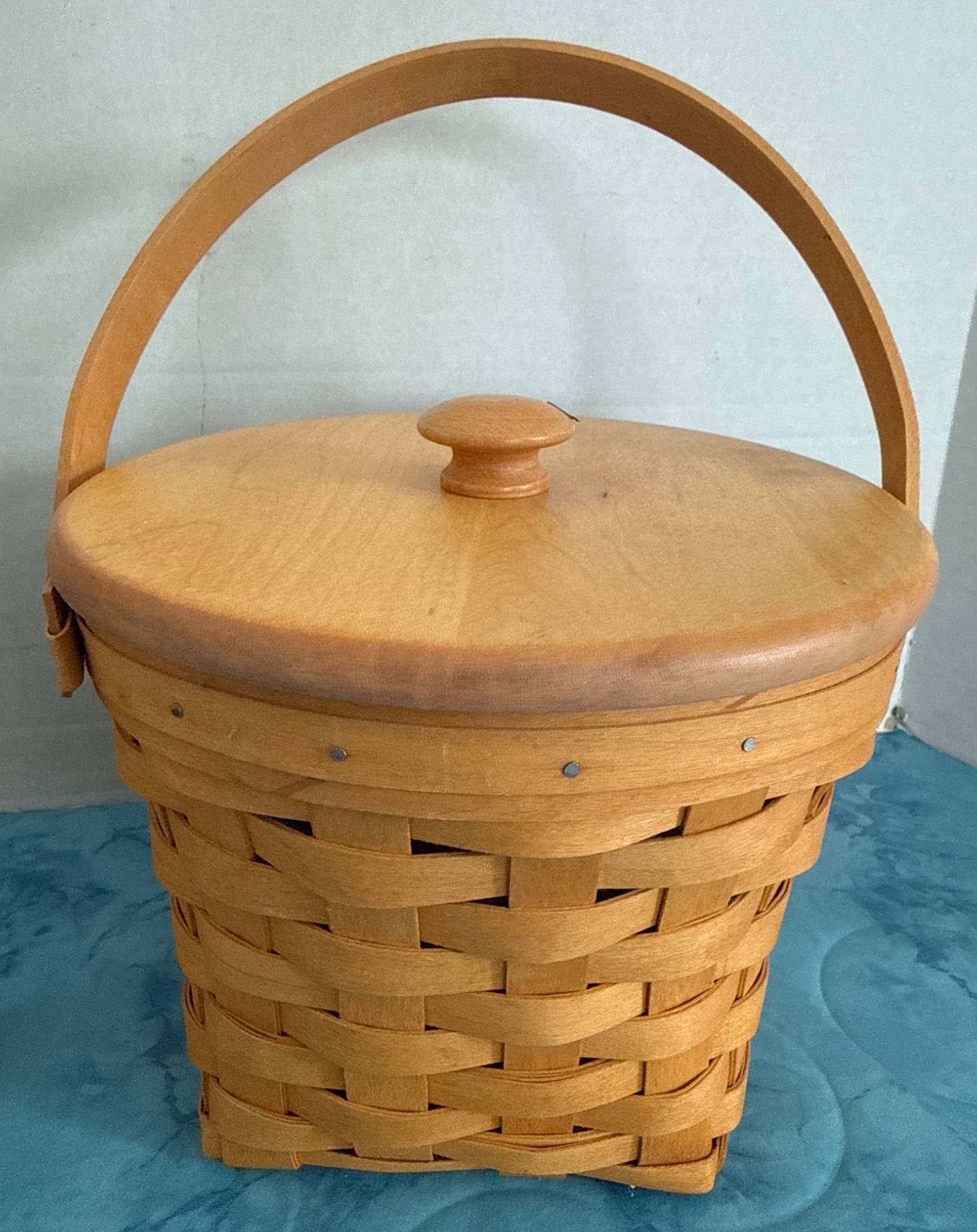 315 Longaberger Handwoven Basket with Lid and Original Box, 7”x8”