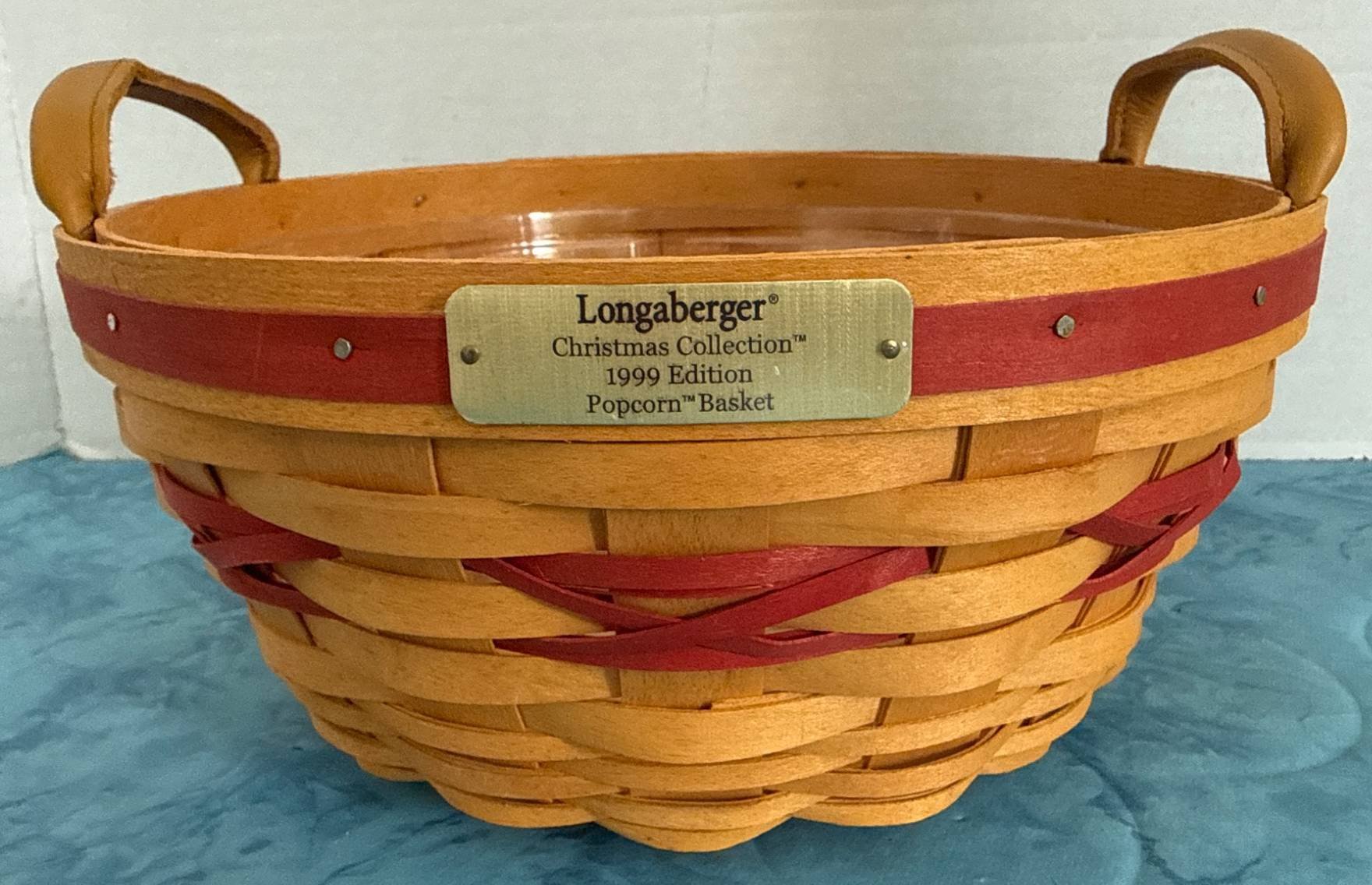 316 Longaberger 1999 Christmas Collection Popcorn Basket with Plastic Liner, 5×10.5?