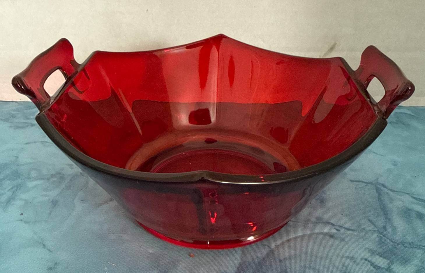 325 Ruby Red Hexagon Shaped Glass Serving Bowl with Side Handles, 3”x6.5”