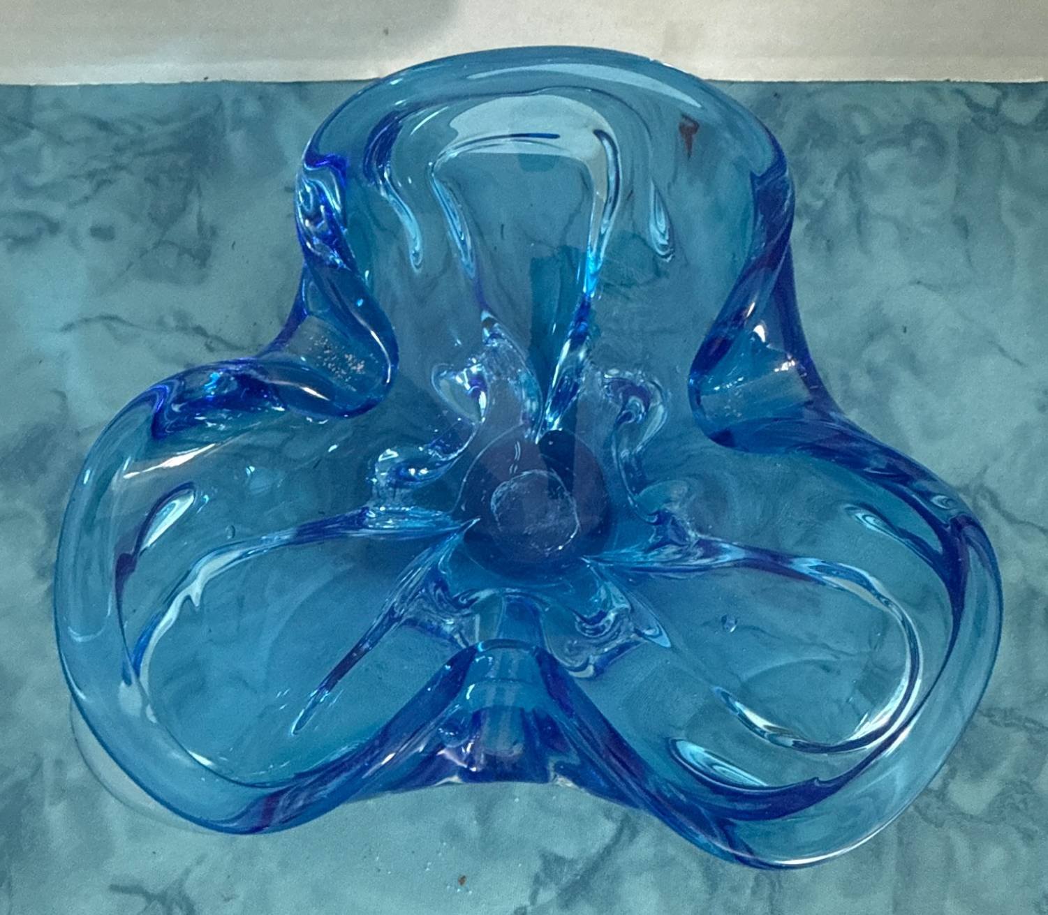 329 Murano Style Blue Art Glass Bowl with Swirled Design, 8.5?