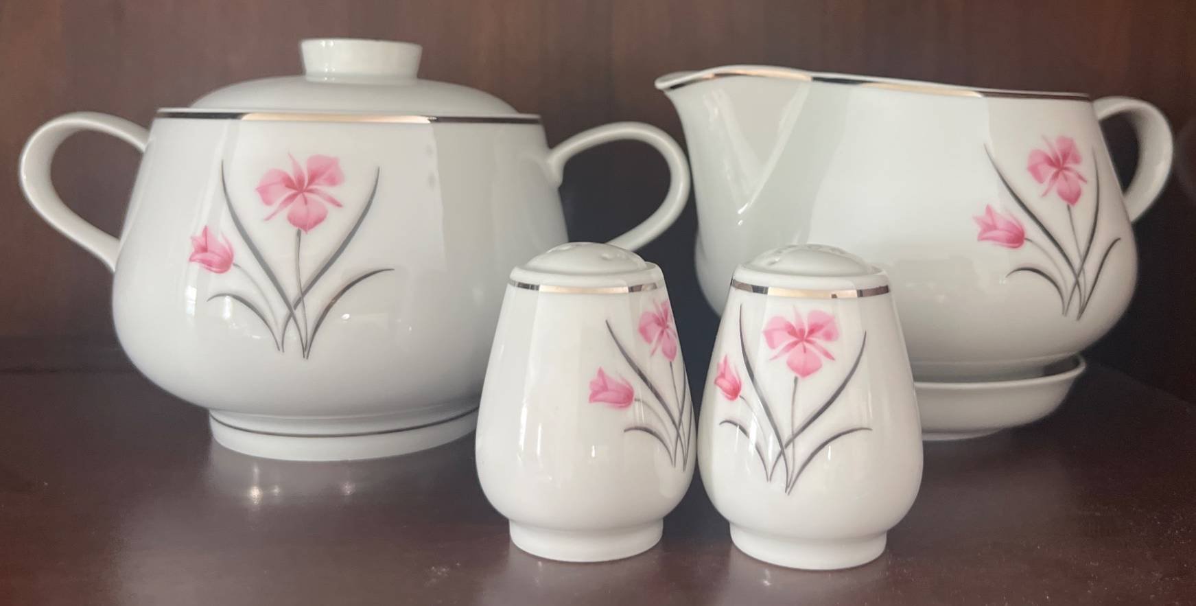 336 Easterling Bavarian Porcelain Creamer, Sugar Bowl, & Salt and Pepper Shakers with Floral Motif