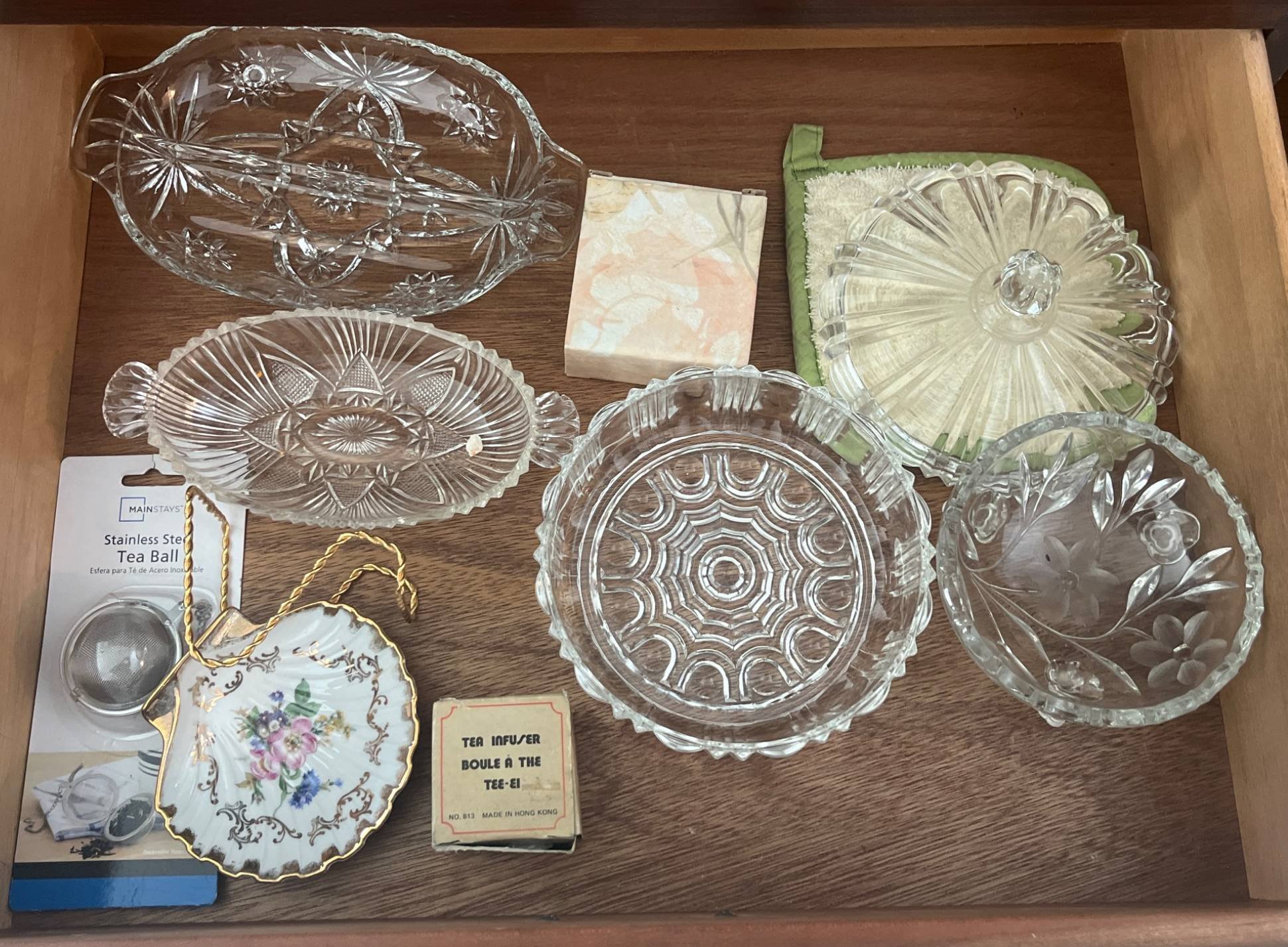 341 Clear Glass Bowls, Serving Dishes, Shell Trinket Dish & Stainless Steel Tea Ball