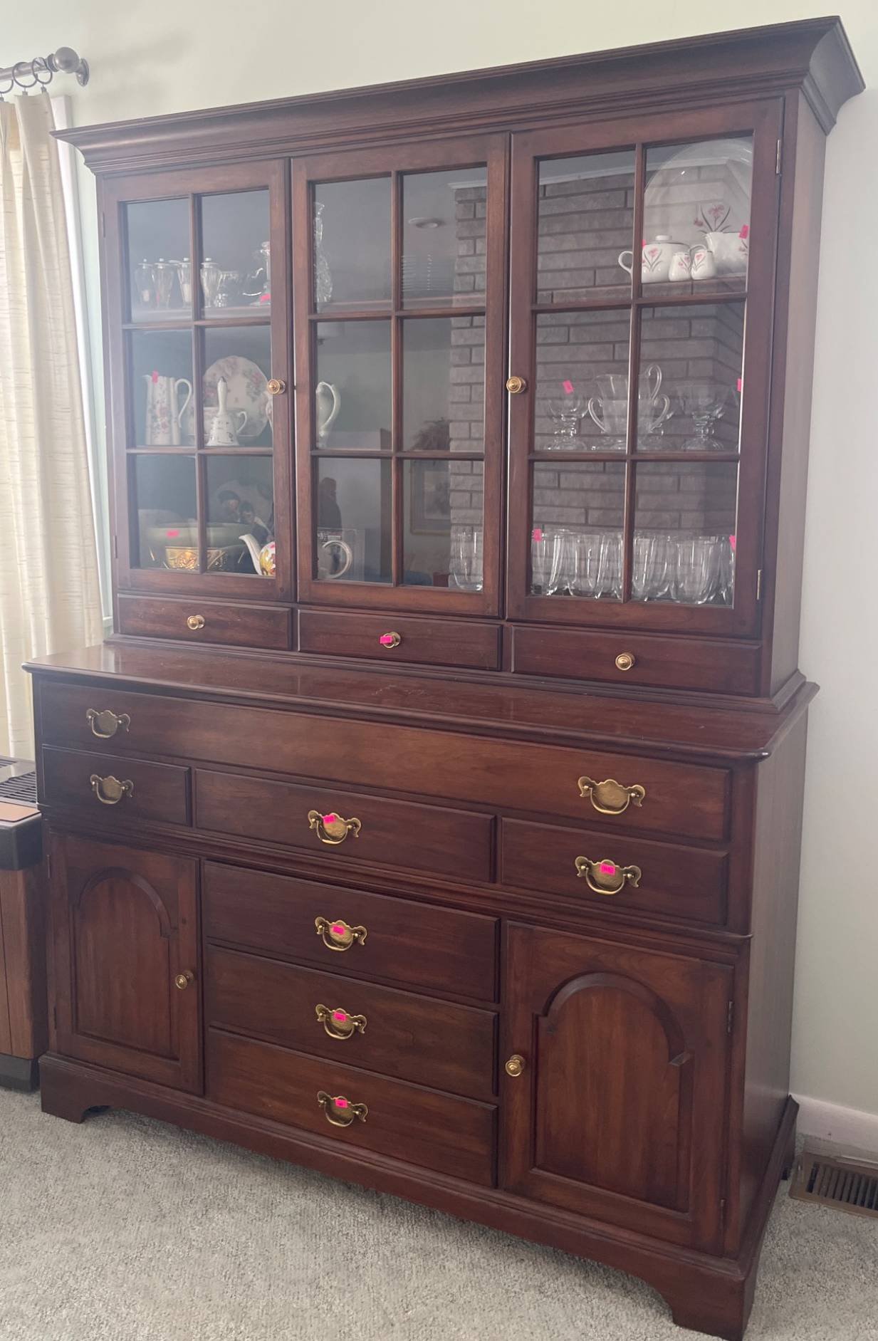 344 Pennsylvania House 2-Piece China Cabinet with Glass Doors, 54x20x74? (CONTENTS NOT INCLUDED)