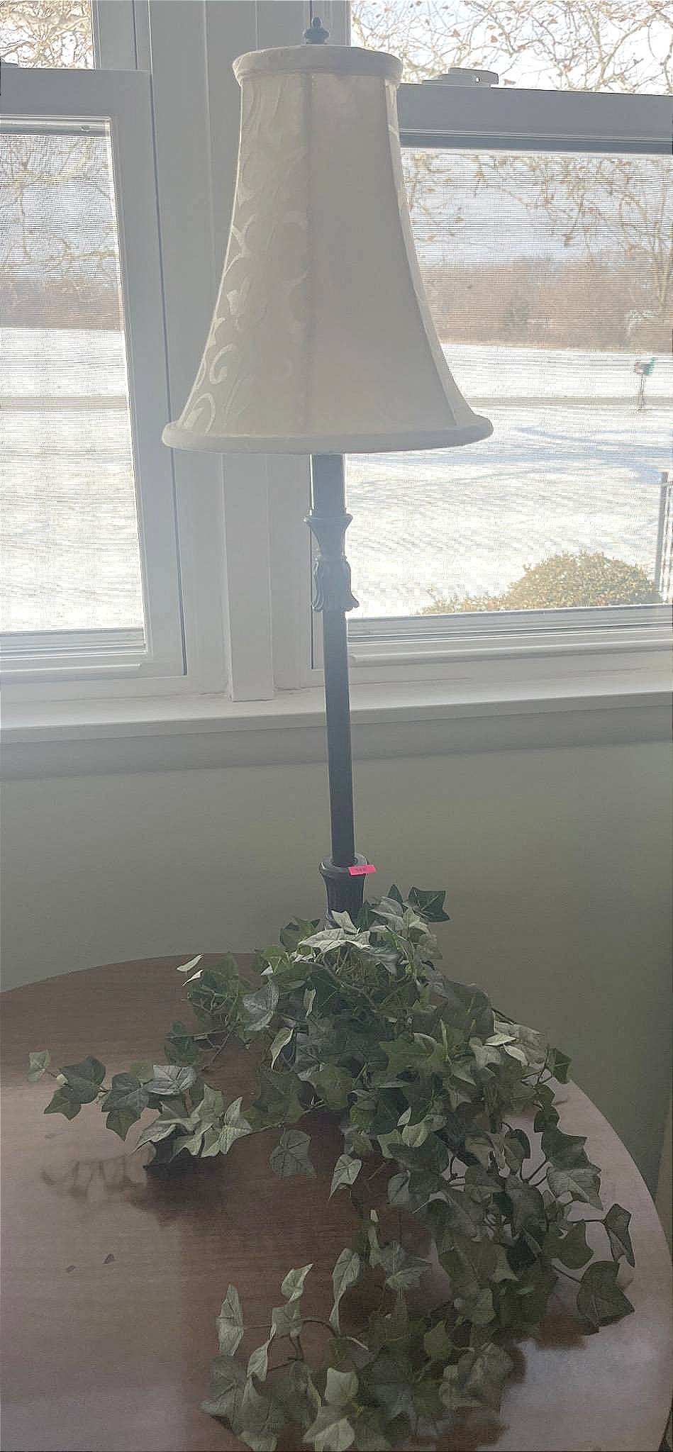 345 Metal Table Lamp with Fabric Shade and Leaf Motif, 31?