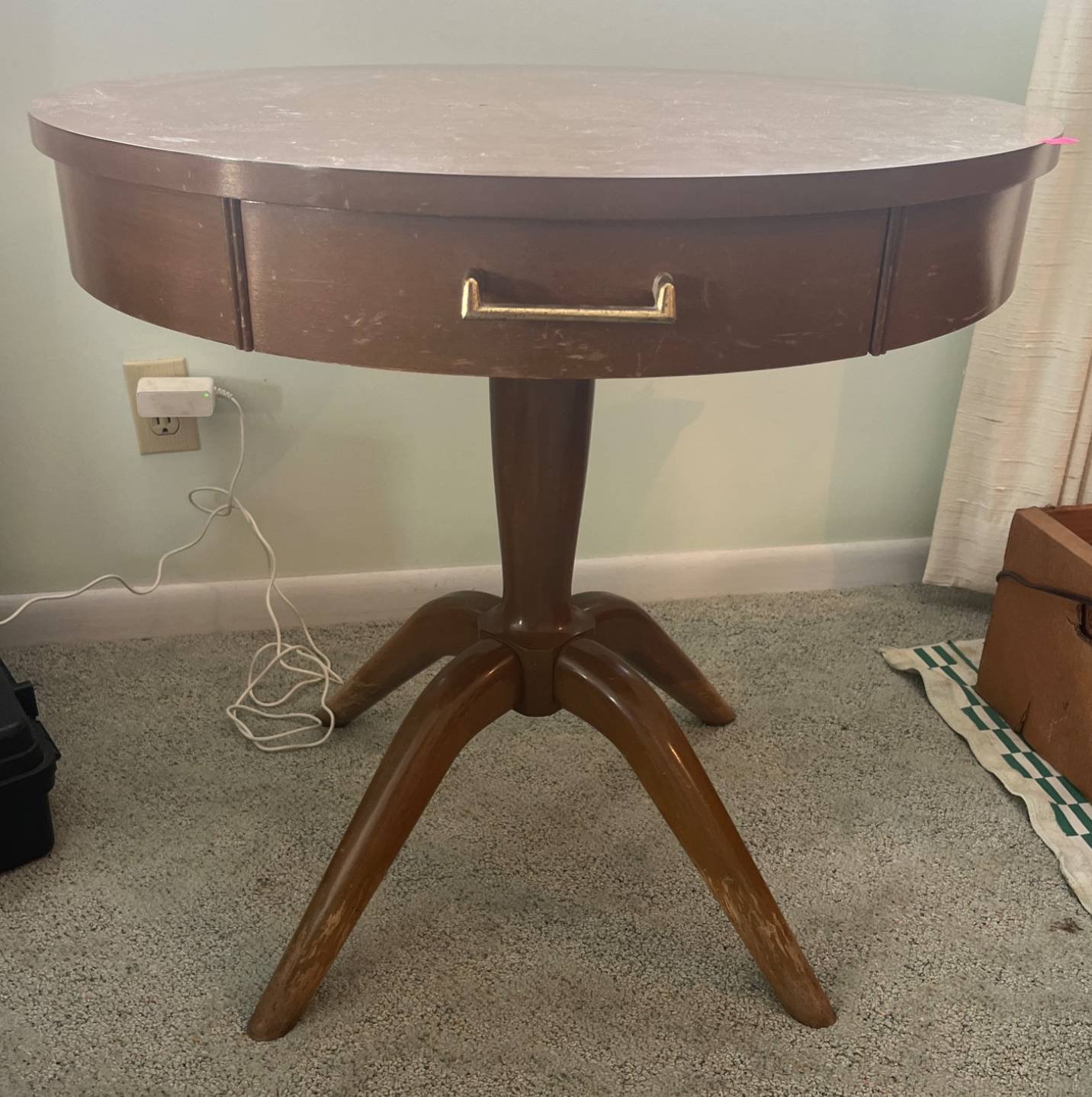 346 Round Mersman Side Table with Drawer and Brass Pulls, 27.5×26.5?