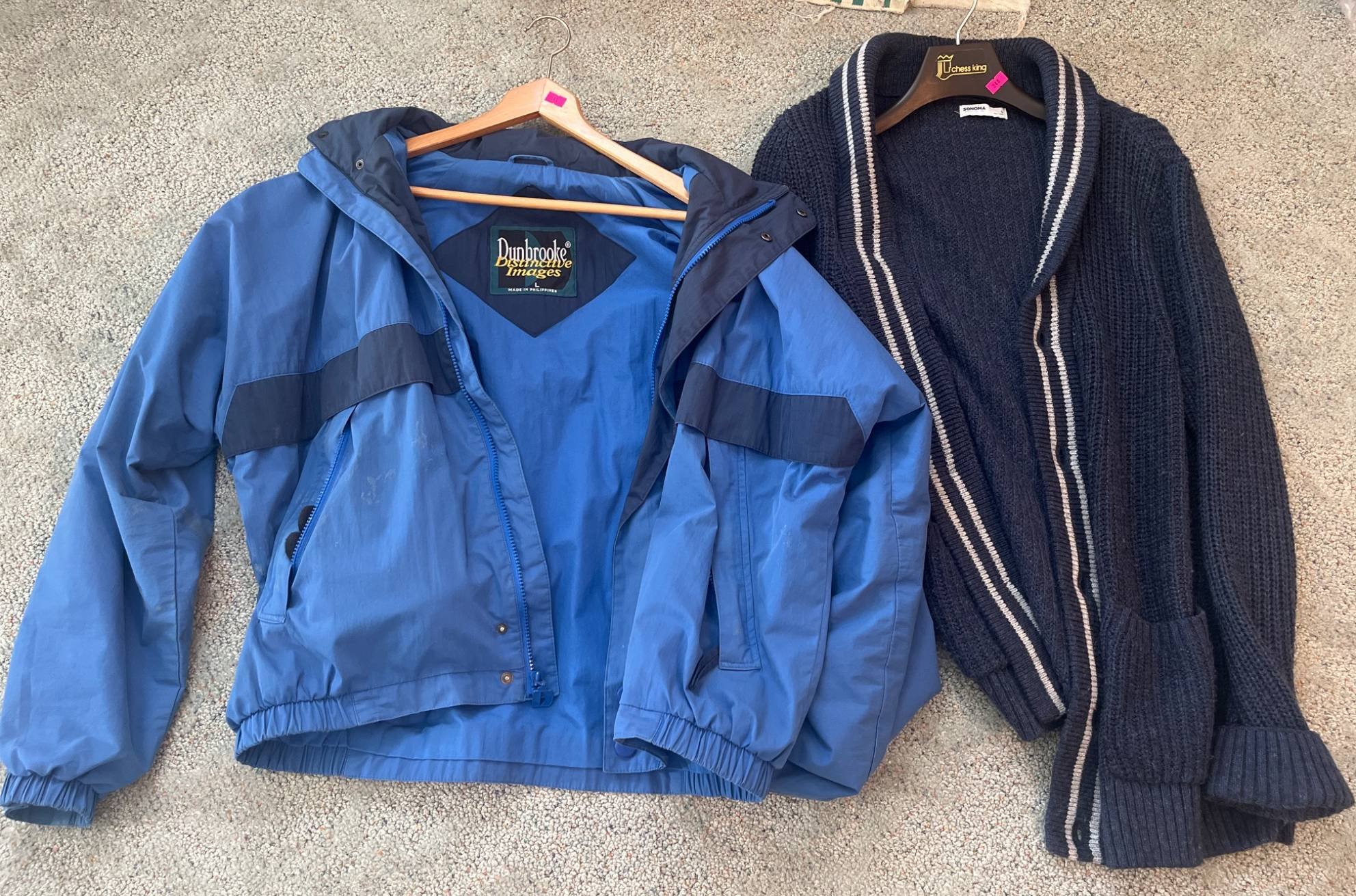 347 Dunbrooke Men’s Jacket and Sonoma Women’s Cardigan, Size S & L