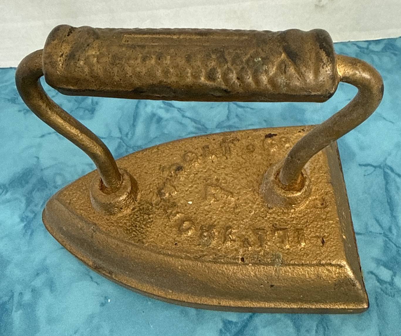 108 Gold-Tone Cast Iron Sad Iron with Textured Handle, 4.5?