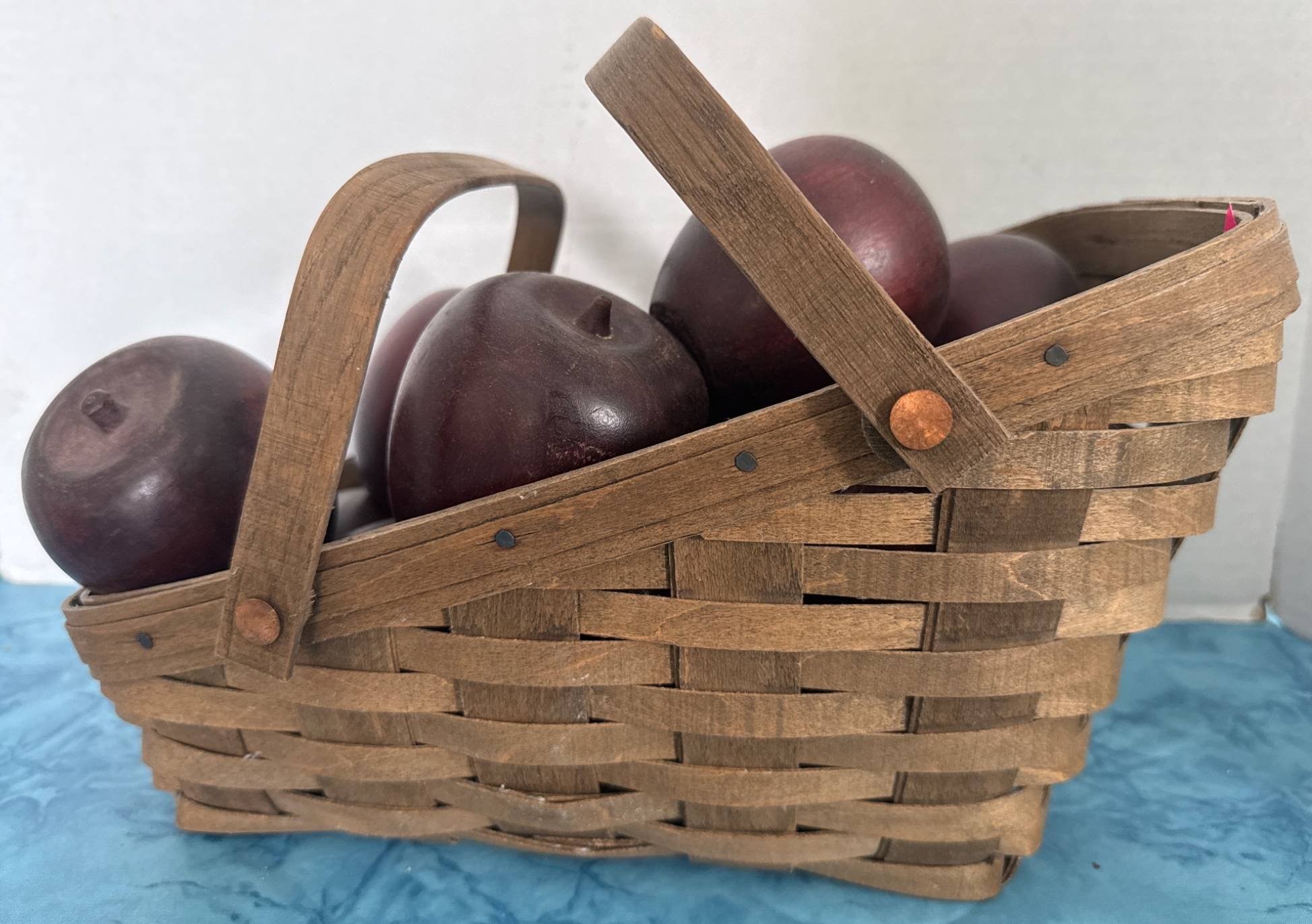 366 Woven Basket with Wood Decor Apples, 14”x7”