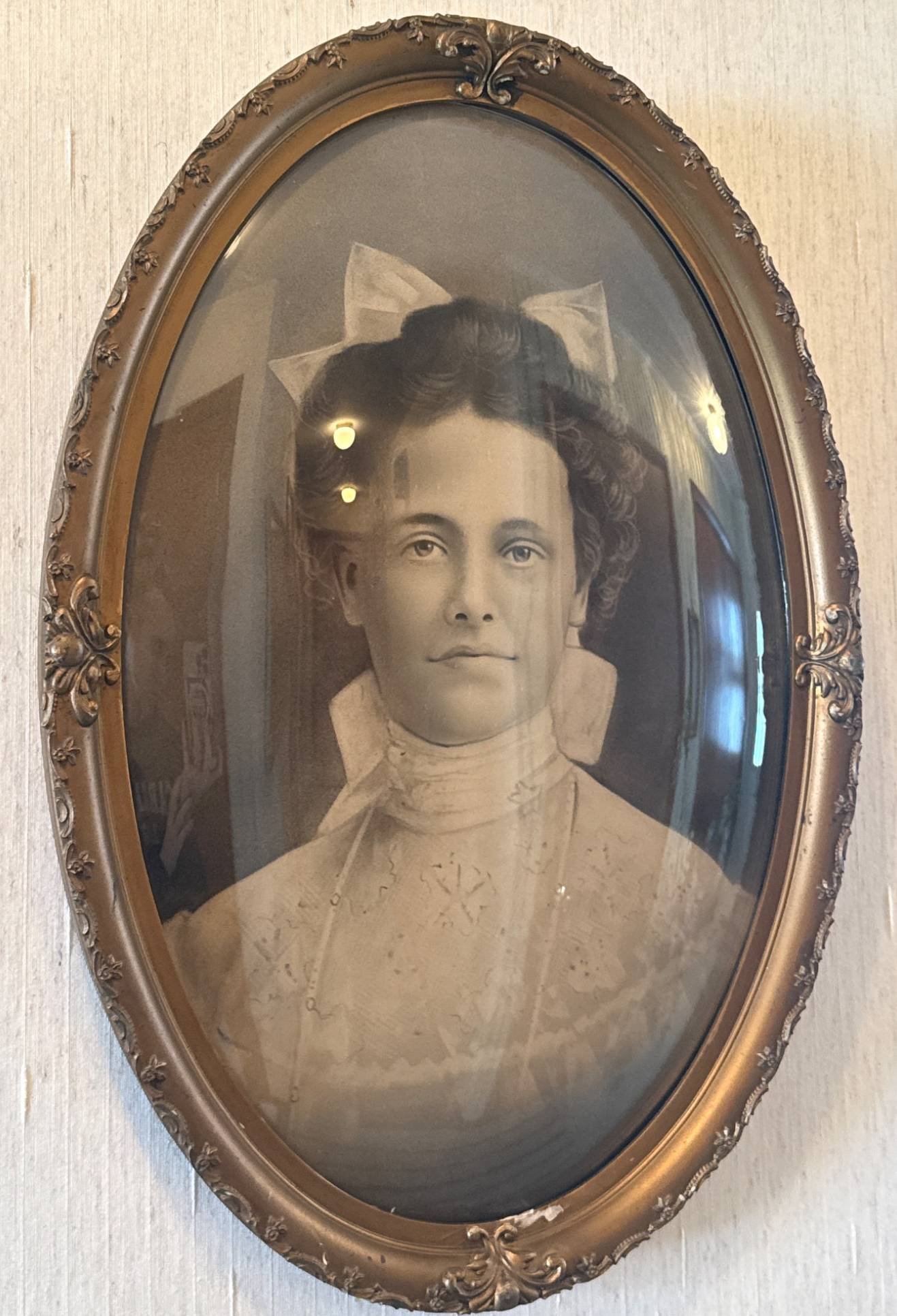 367 Oval Victorian Portrait With Convex Glass in Gilt Frame, 22”x15”