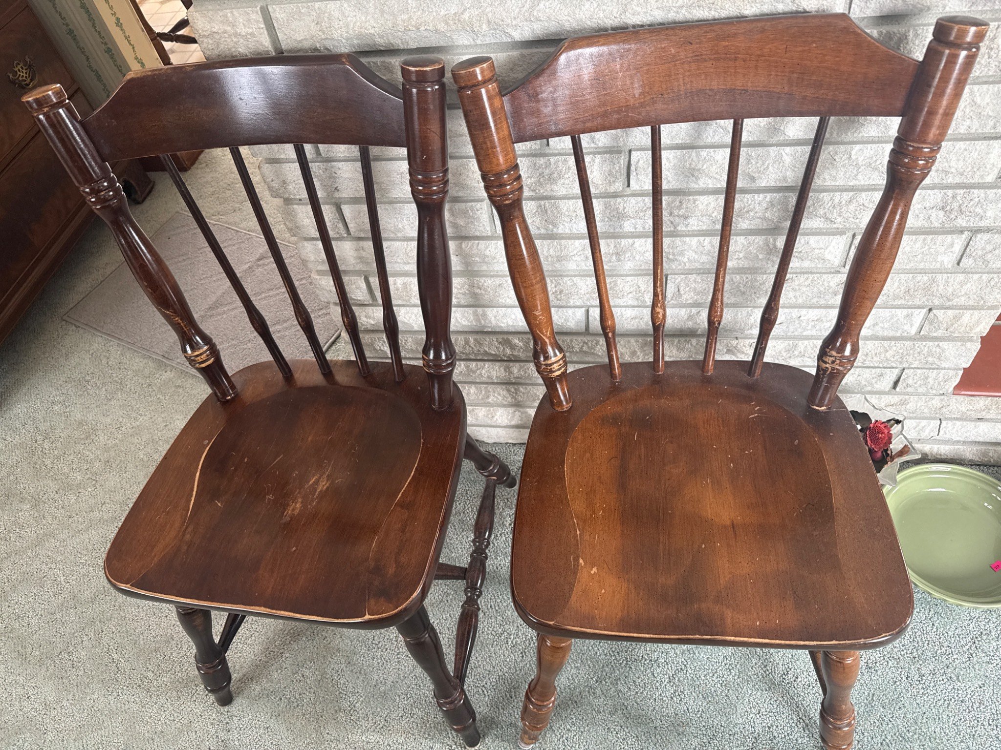 369 2 Spindle-Back, Plank Bottom, Dining Chairs with Turned Legs 33.5x17x16?