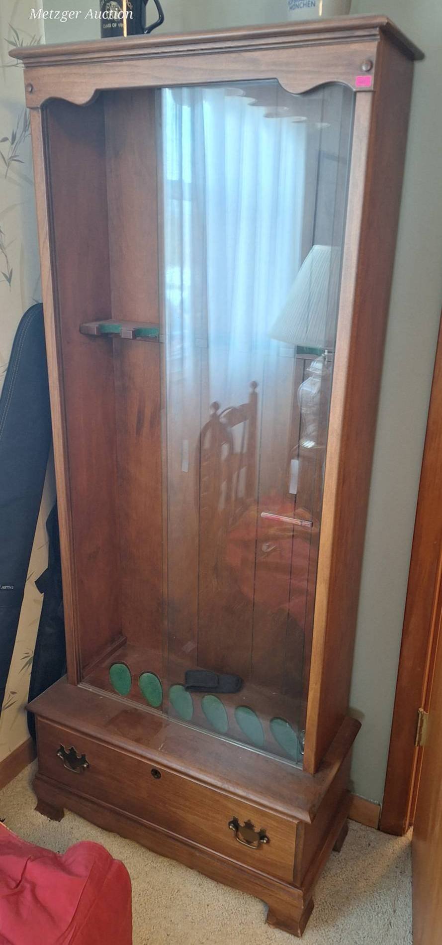 500 Glass-Front Display Gun Cabinet with Single Drawer and Brass Hardware, 26×64?