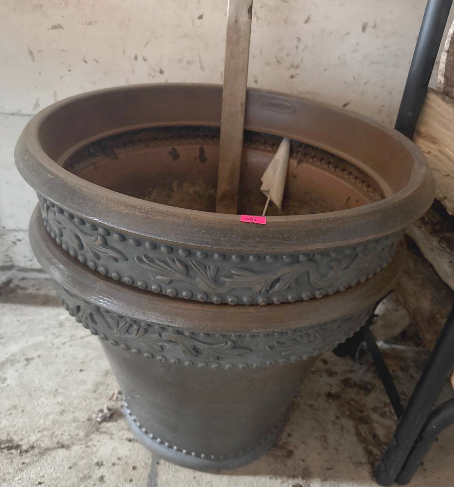 604 2 Plastic Planters with Embossed Leaf Motif, 17”x20”