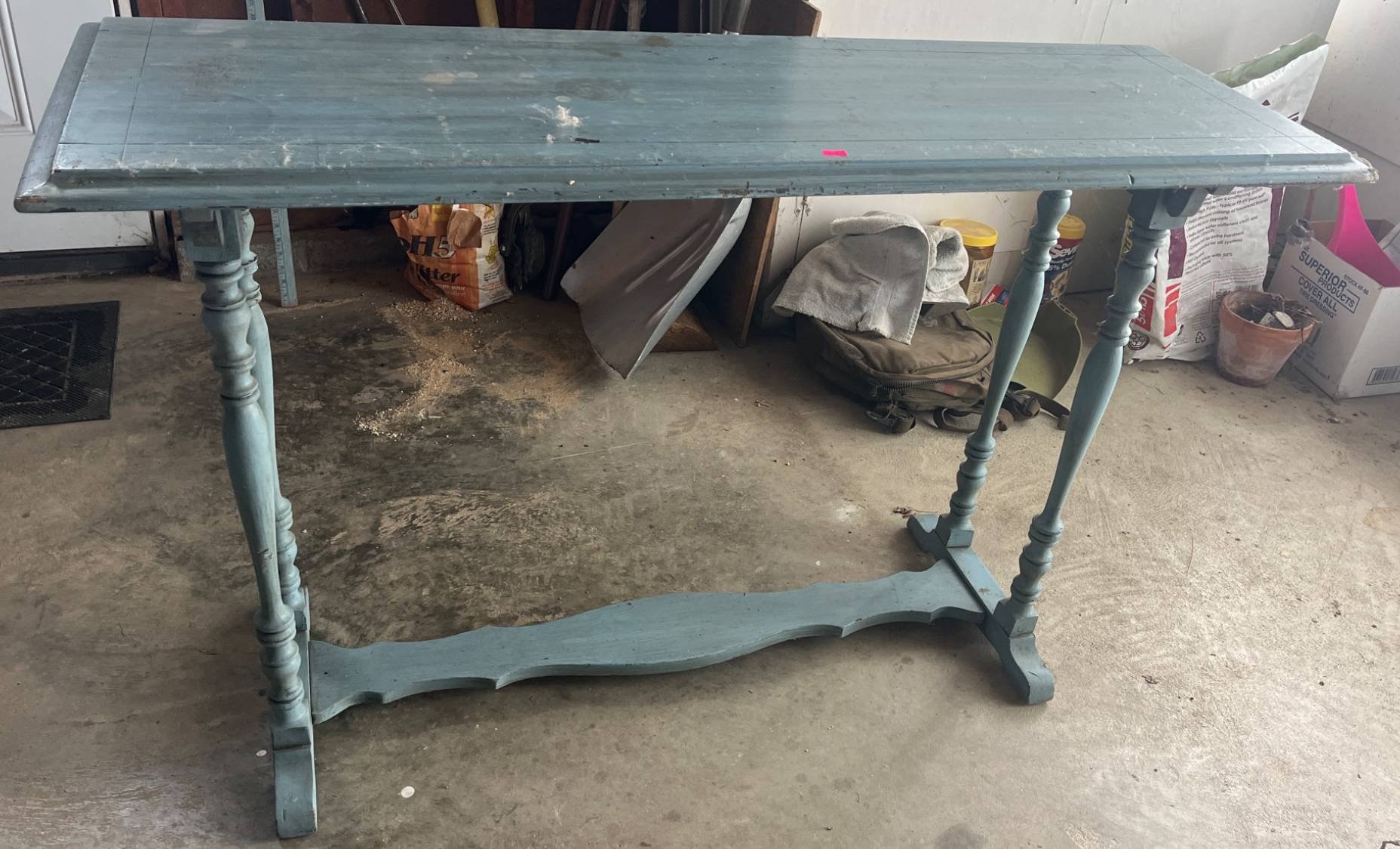 614 Blue Rectangular Sofa Table with Turned Legs 48x16x29.5