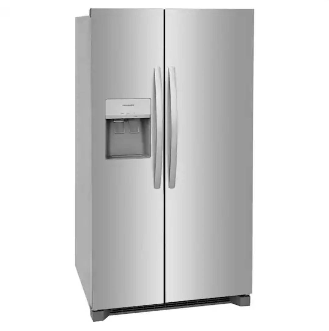 7 Frigidaire 36 in. 26 cu. ft. Standard Depth Side by Side Refrigerator in Stainless Steel Model # FRSS2623ASJ has minor scuffing and dings