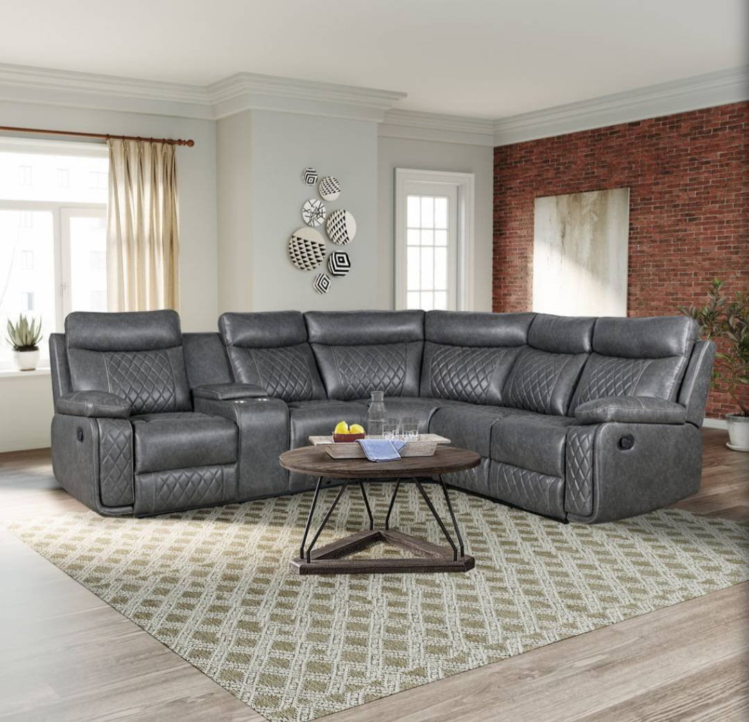 13 Gray 7-Seat Reclining Home Theater Sofa with Cup Holders