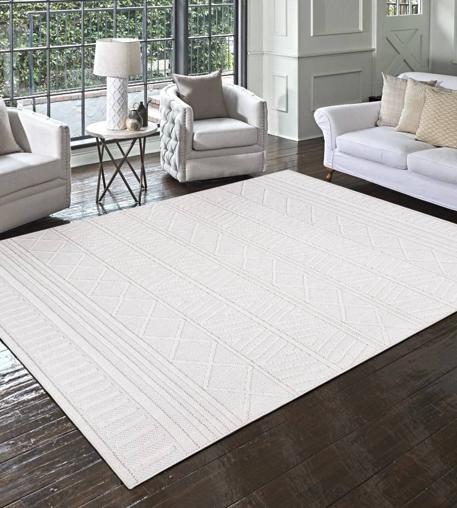 55 Gertmenian Malini Lana Cream Ivory Bohemian Geometric Polyester Area Rug, 9×13