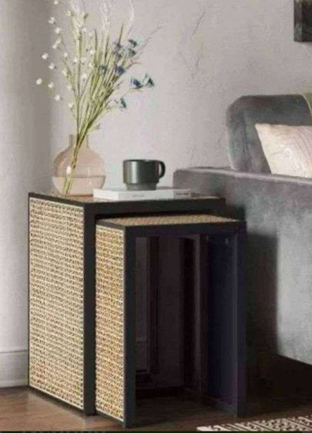 73 Threshold-Brand Nesting Tables with Black Frames and Cane Panels, 18”x18”x24” and 15”x15”x22”