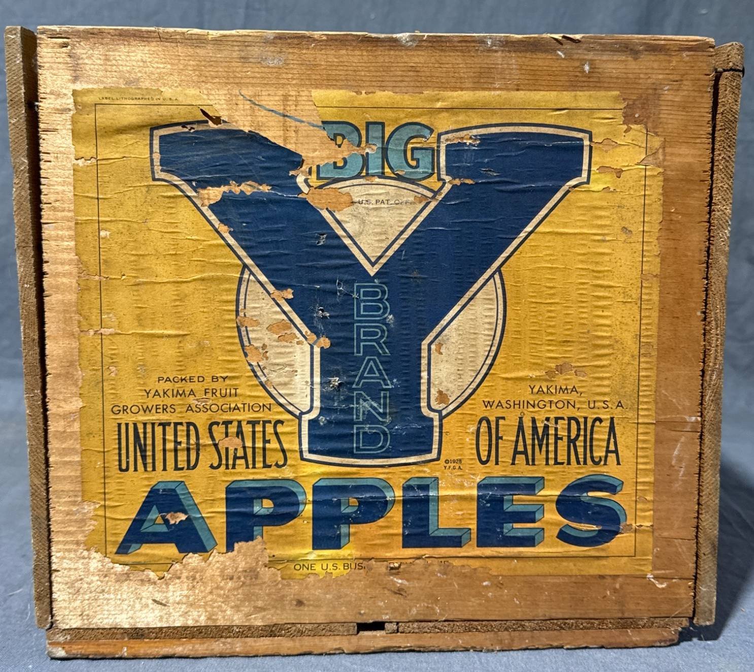 6007 Wood Crate with Big Y Brand Apple Advertisement, 11”x18.5”x12.5”