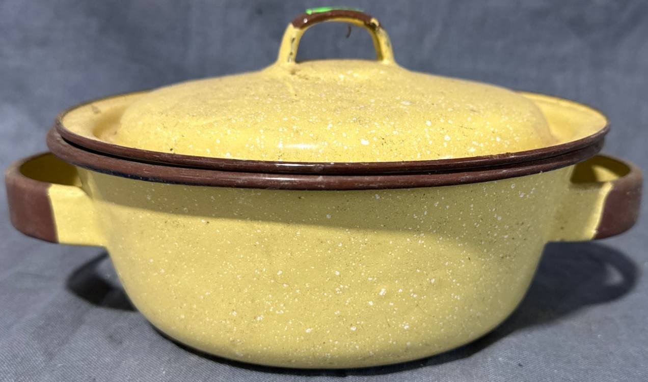 6010 Yellow Enamel Cookware Pot with Lid and Handles 3”x7.5”