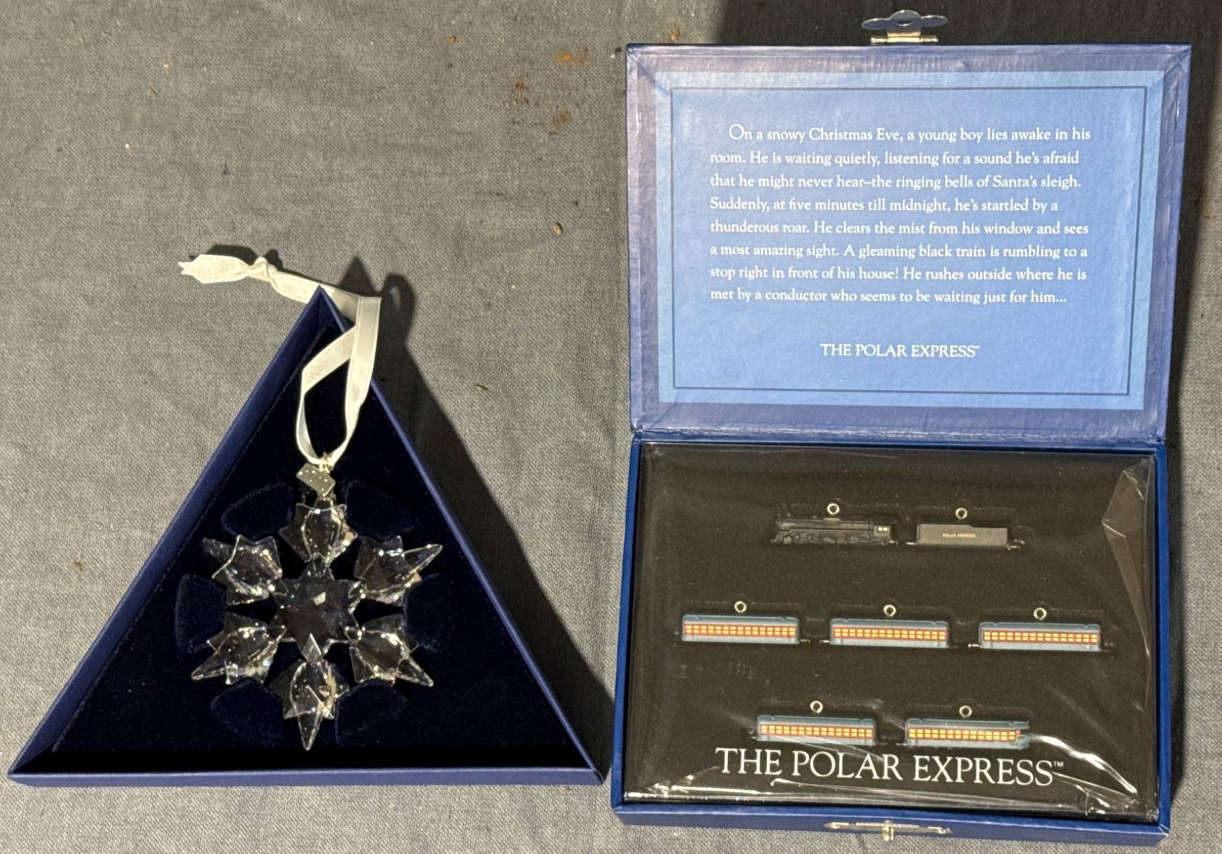 6015 Swarovski Crystal Snowflake Ornament 2010 & Hallmark Polar Express Miniature Train Ornaments, 3?